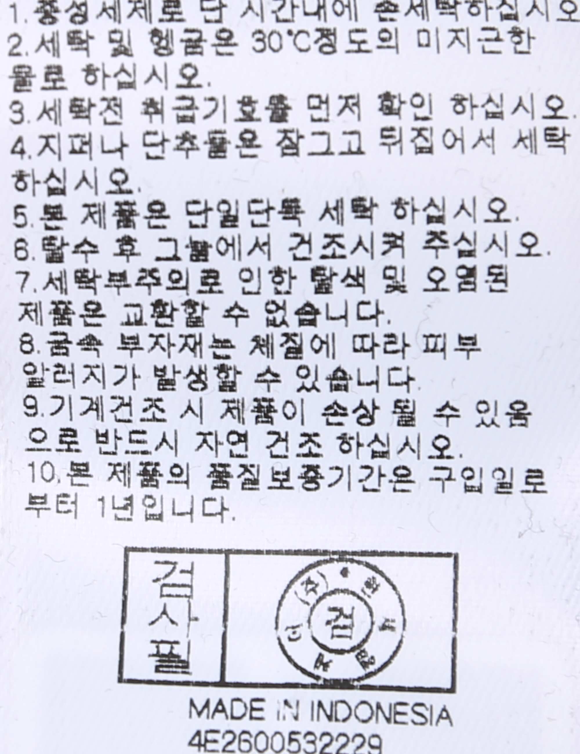 | 세탁방법 및 취급시 주의사항 | 본 제품은 손세탁 하십시오.(케어라벨참고) |