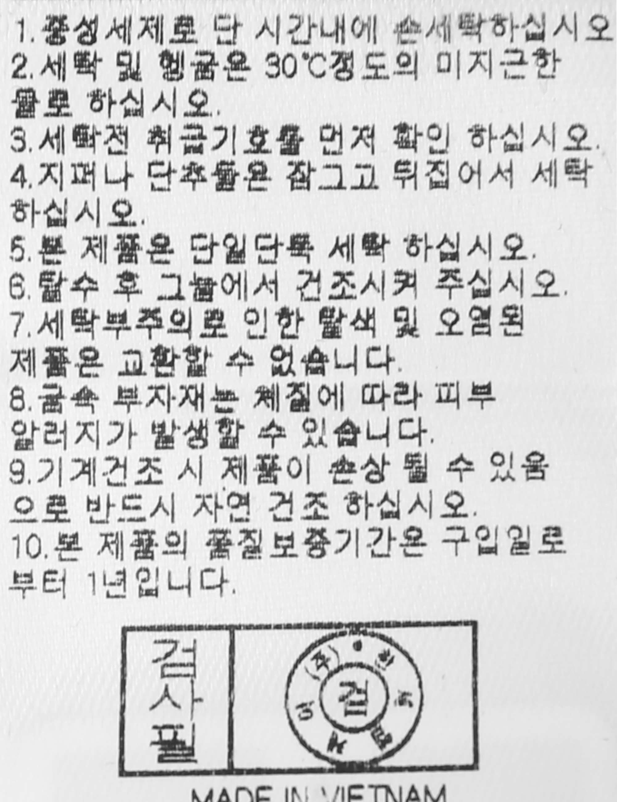 | 세탁방법 및 취급시 주의사항 | 본 제품은 손세탁 하십시오.(케어라벨참고) |
