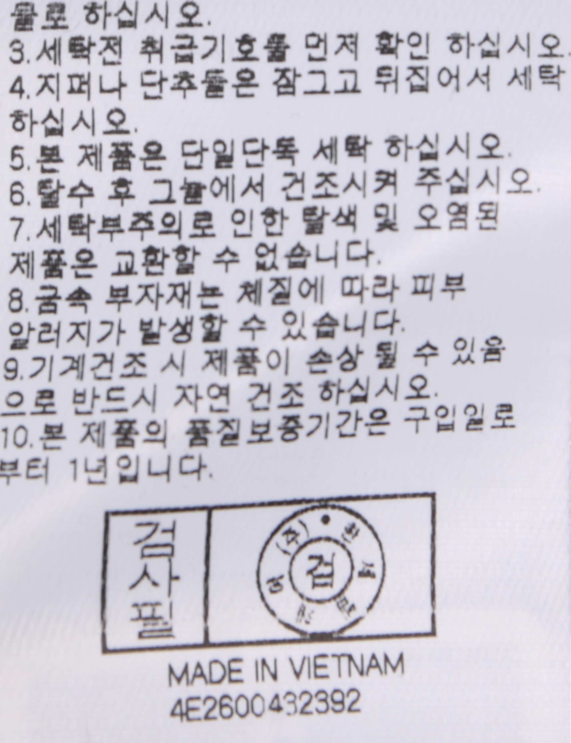 | 세탁방법 및 취급시 주의사항 | 본 제품은 손세탁 하십시오.(케어라벨참고) |