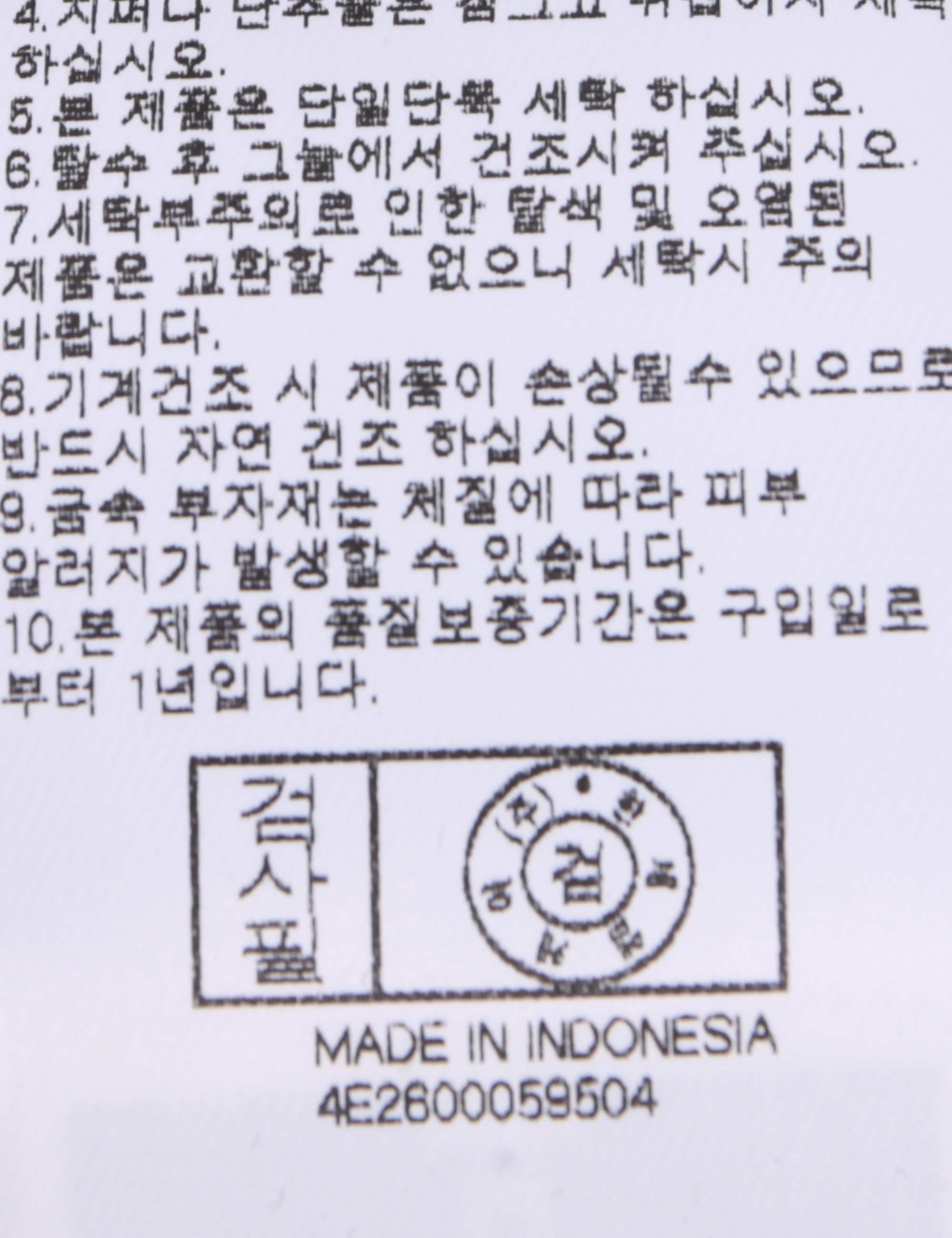 | 세탁방법 및 취급시 주의사항 | 중성세제로 단 시간내에 세탁하십시오.(케어라벨참고) |