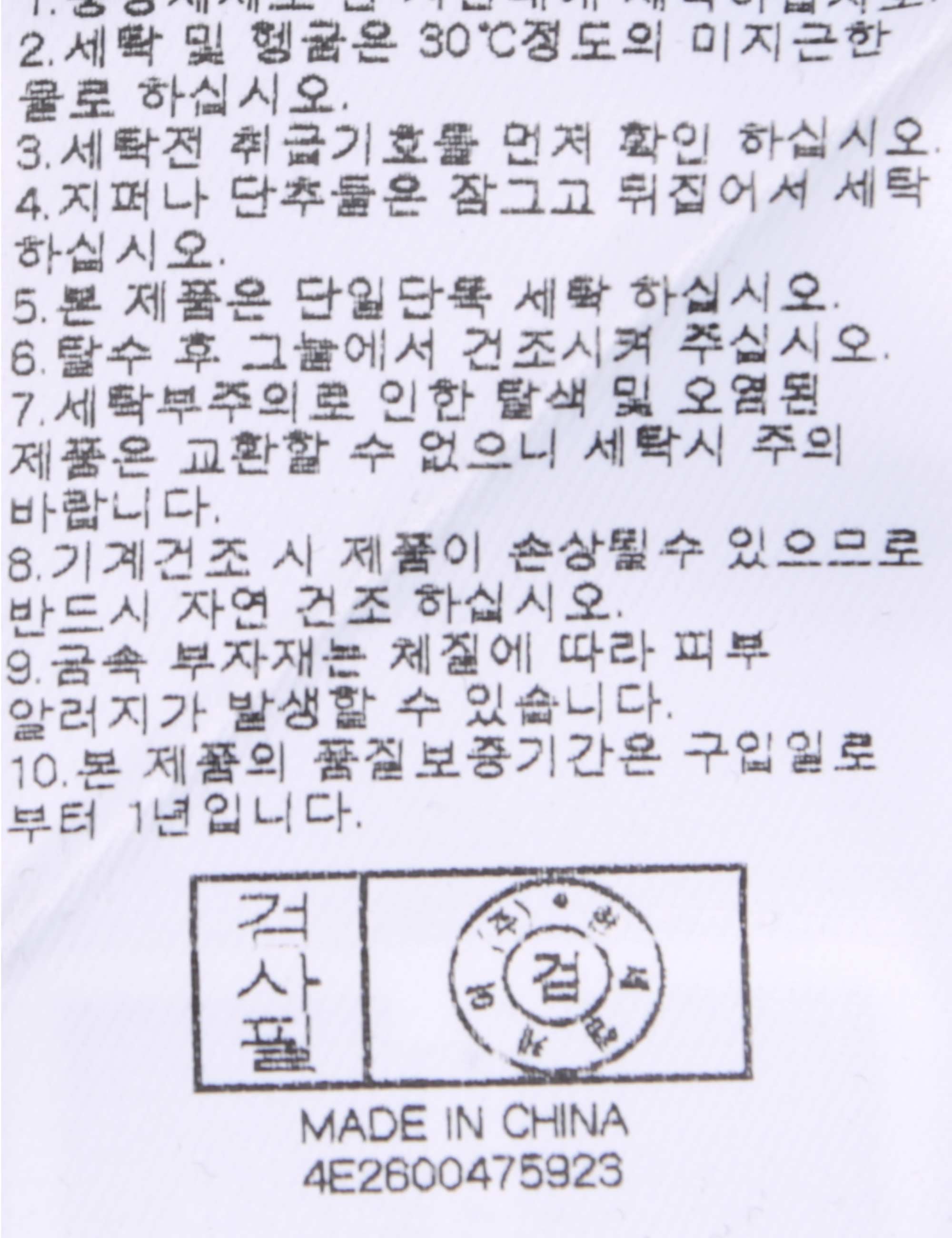 | 세탁방법 및 취급시 주의사항 | 중성세제로 단 시간내에 세탁하십시오.(케어라벨참고) |