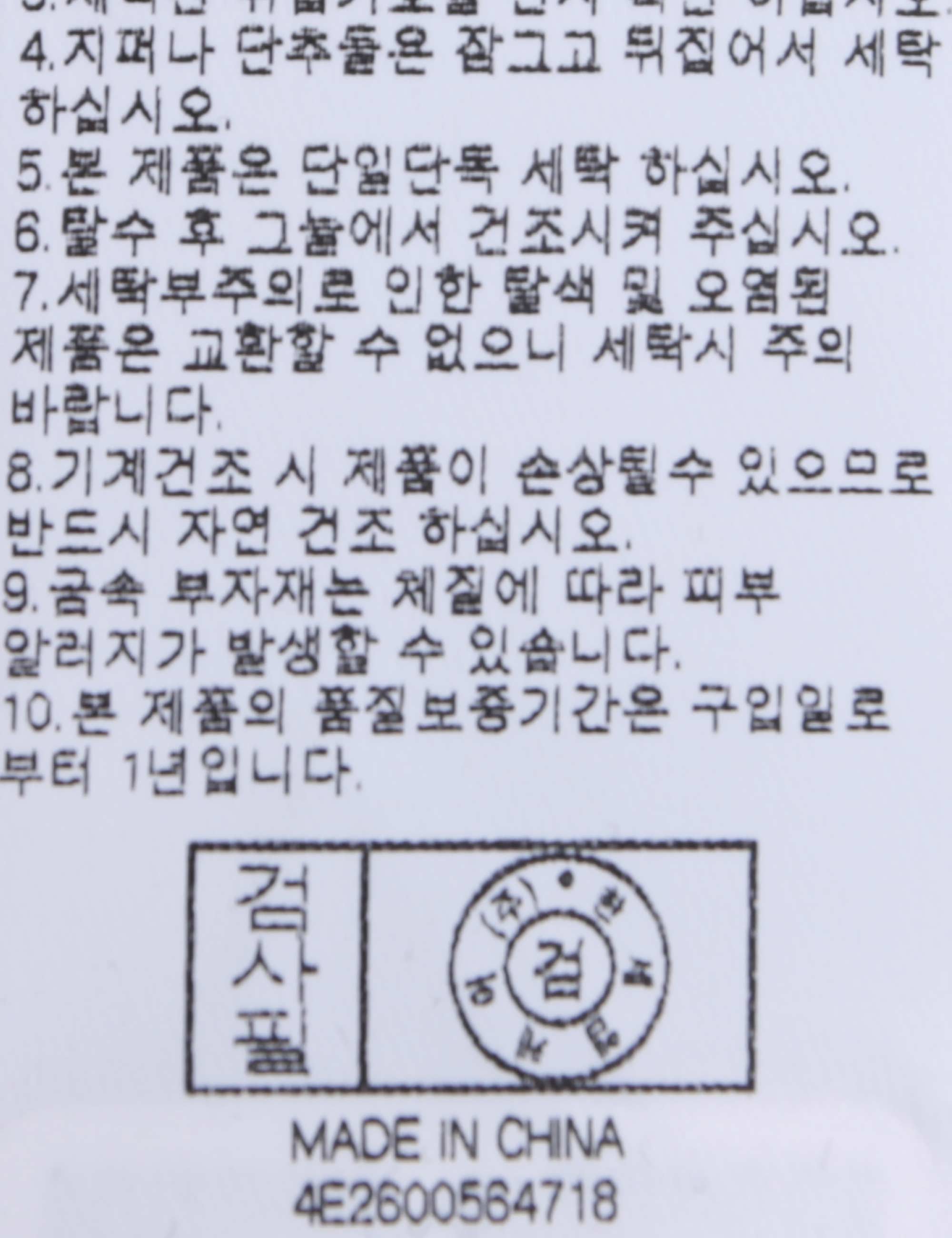세탁방법 및 취급시 주의사항 중성세제로 단 시간내에 세탁하십시오.(케어라벨참고)