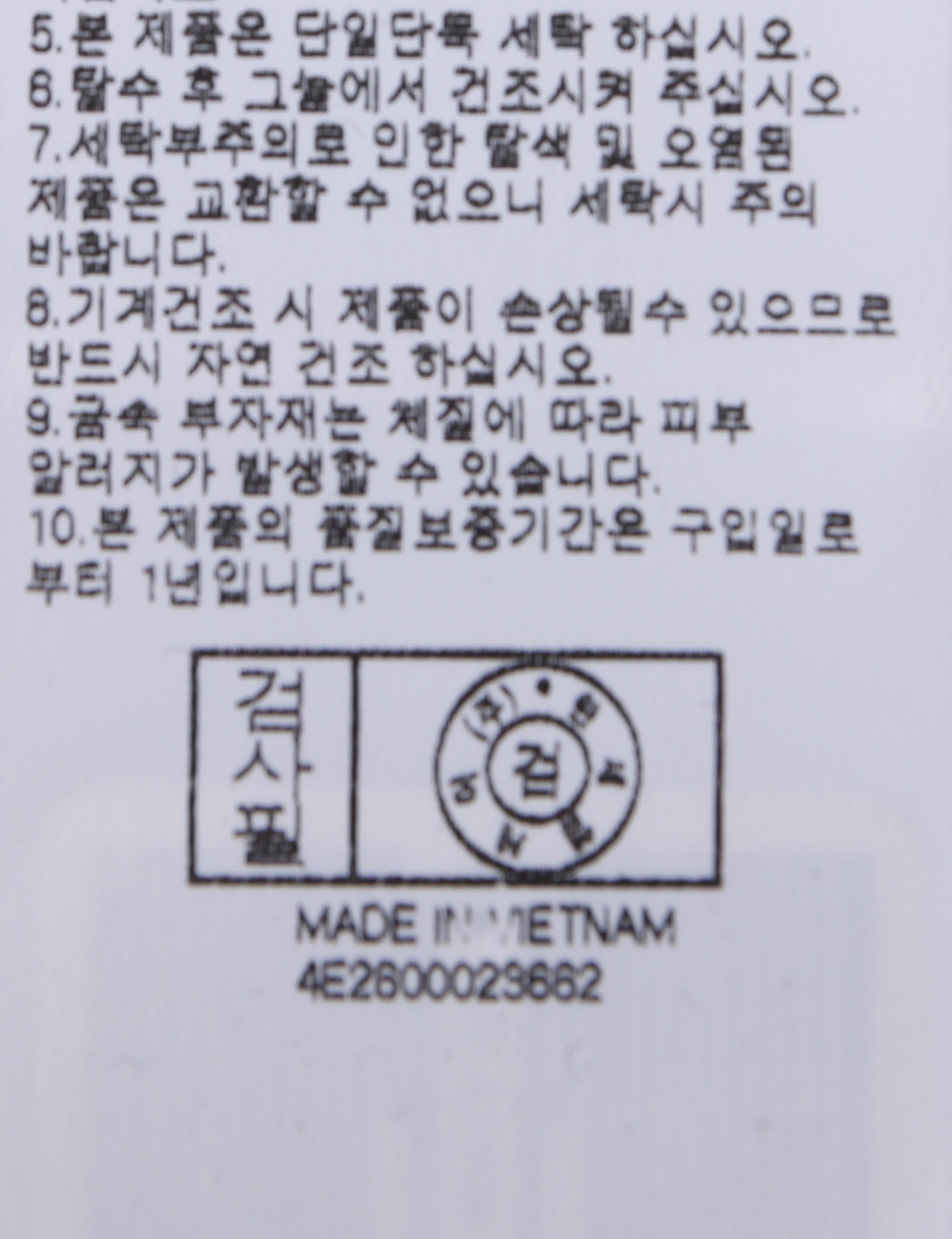 | 세탁방법 및 취급시 주의사항 | 중성세제로 단 시간내에 세탁하십시오.(케어라벨참고) |