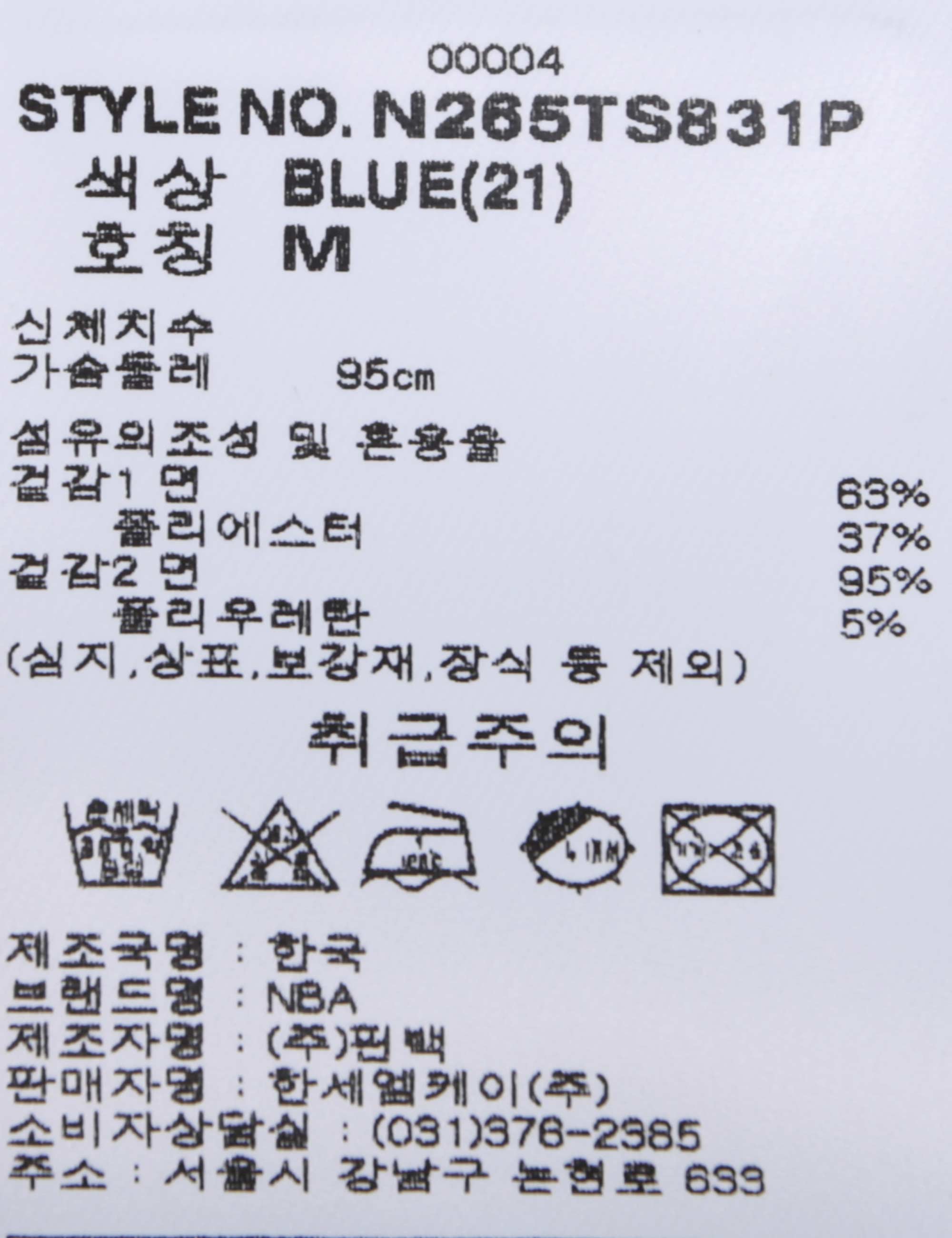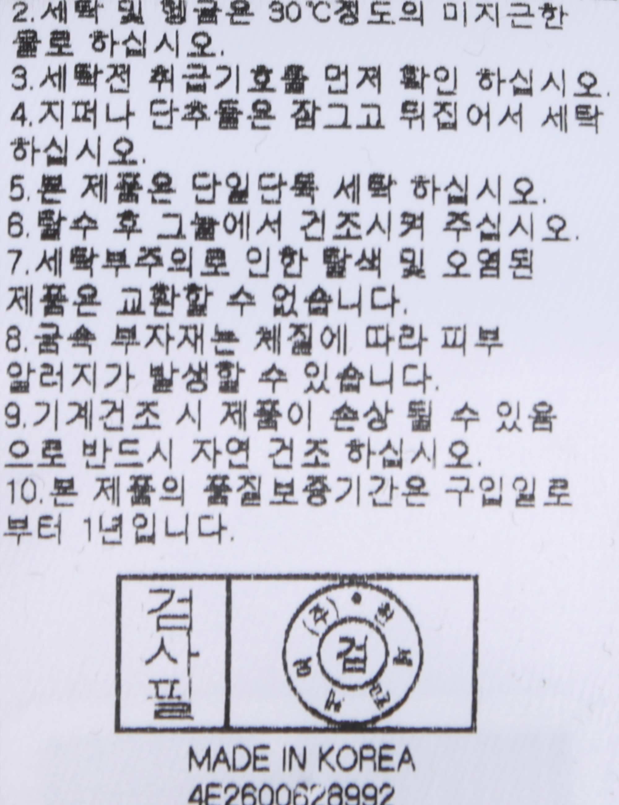 | 세탁방법 및 취급시 주의사항 | 본 제품은 손세탁 하십시오.(케어라벨참고) |