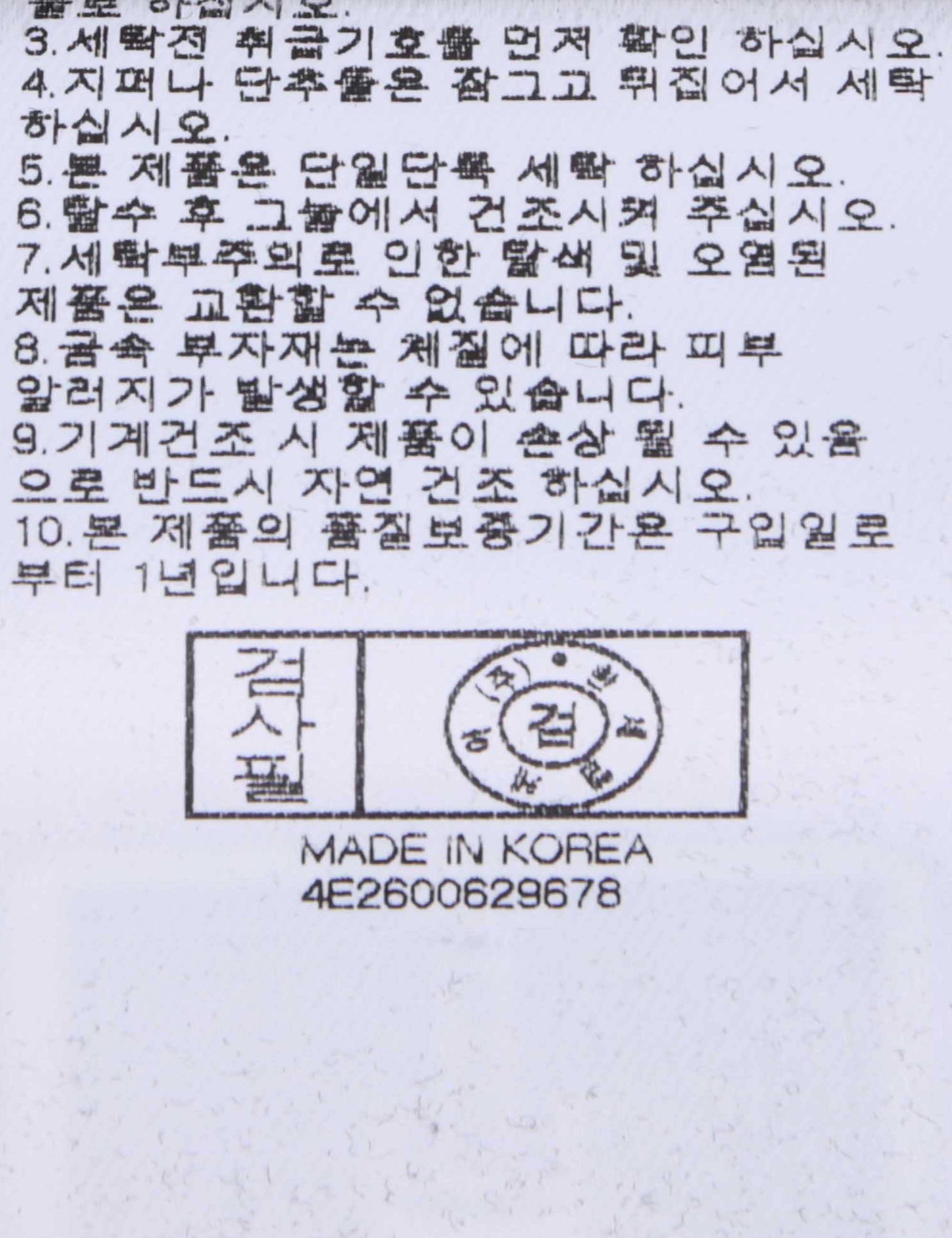 세탁방법 및 취급시 주의사항 본 제품은 손세탁 하십시오.(케어라벨참고)