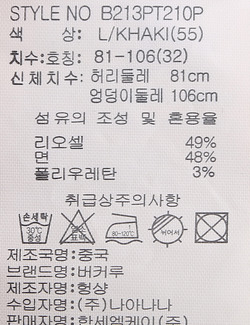 제품소재 [겉감]리오셀49% 면48% 폴리우레탄3%