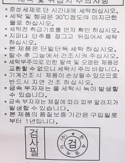 세탁방법 및 취급시 주의사항 본 제품은 손세탁 하십시오.(케어라벨참고)