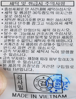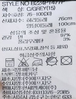 | 세탁방법 및 취급시 주의사항 | 본 제품은 반드시 드라이크리닝 하십시오.(세탁라벨참고) |