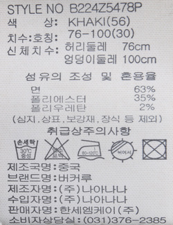 제품소재 [겉감]면63% 폴리에스터35% 폴리우레탄2%