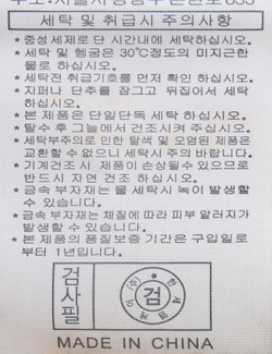 세탁방법 및 취급시 주의사항 본 제품은 손세탁 하십시오.(케어라벨참고)