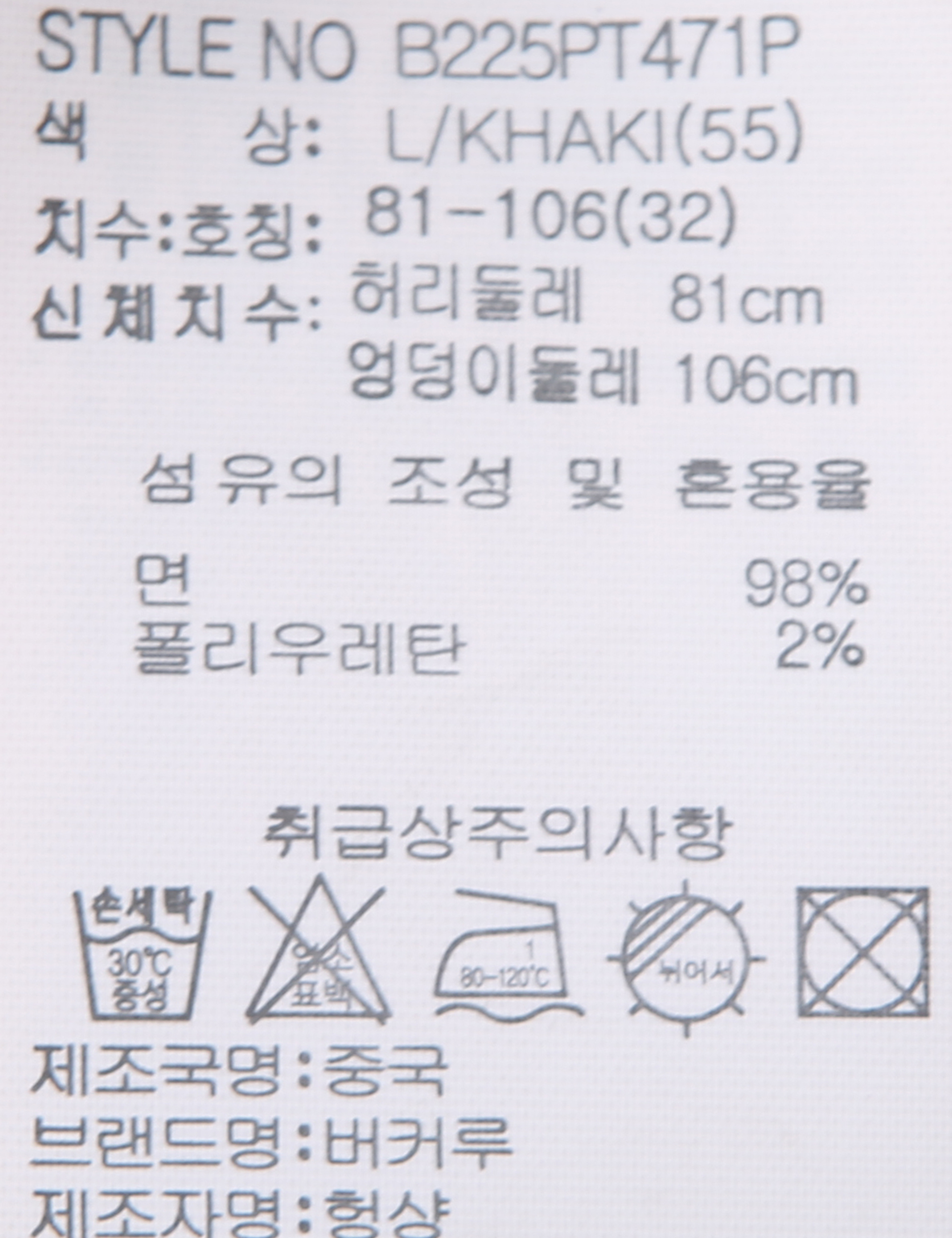 상품명 남성 주자스판 가먼트다잉 밴딩 팬츠(B225PT471P)