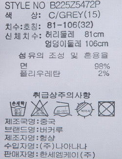 브랜드 홈 바로가기| 제품소재 | [겉감]면98% 폴리우레탄2% |