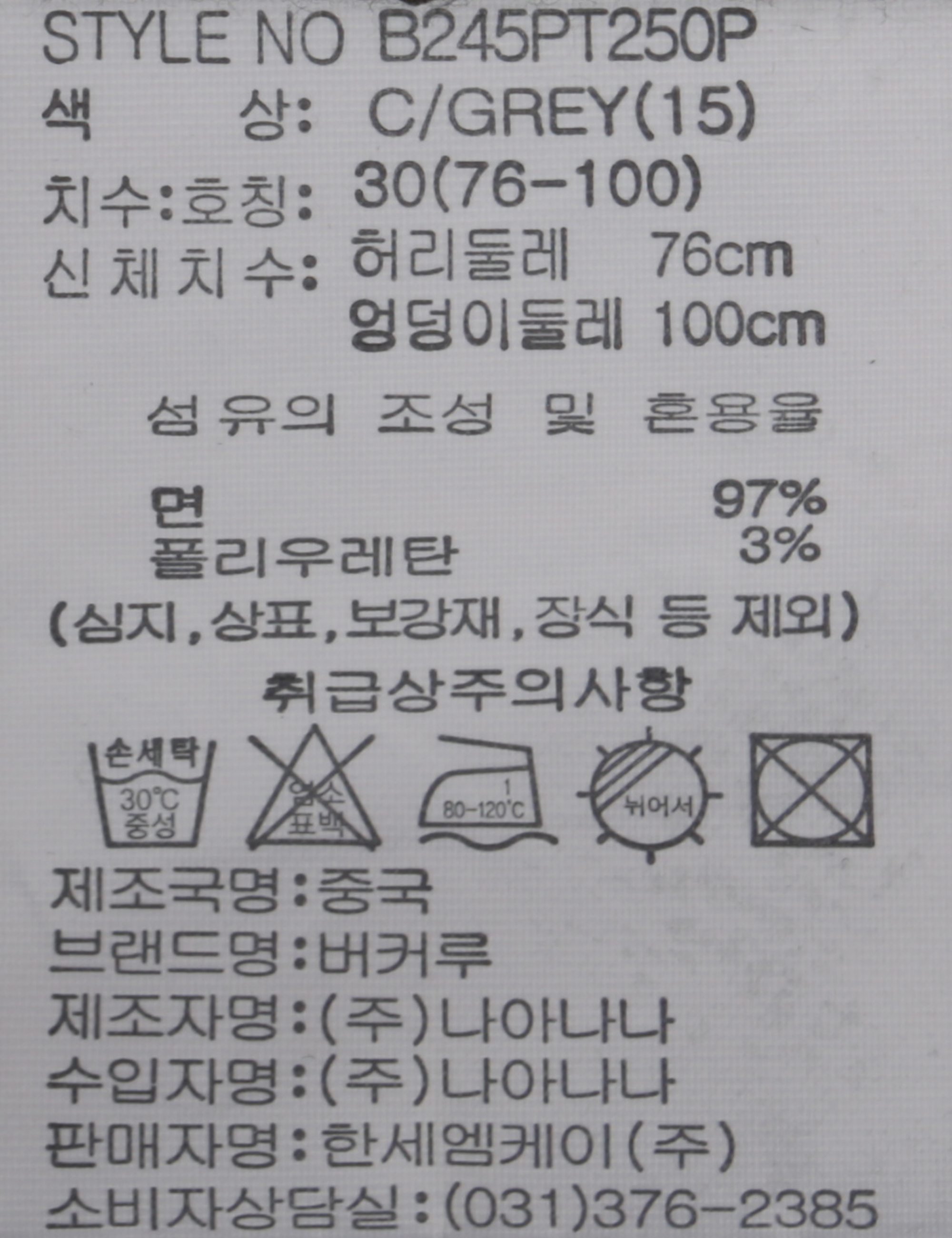 브랜드 홈 바로가기| 제품소재 | [겉감]면97% 폴리우레탄3% |