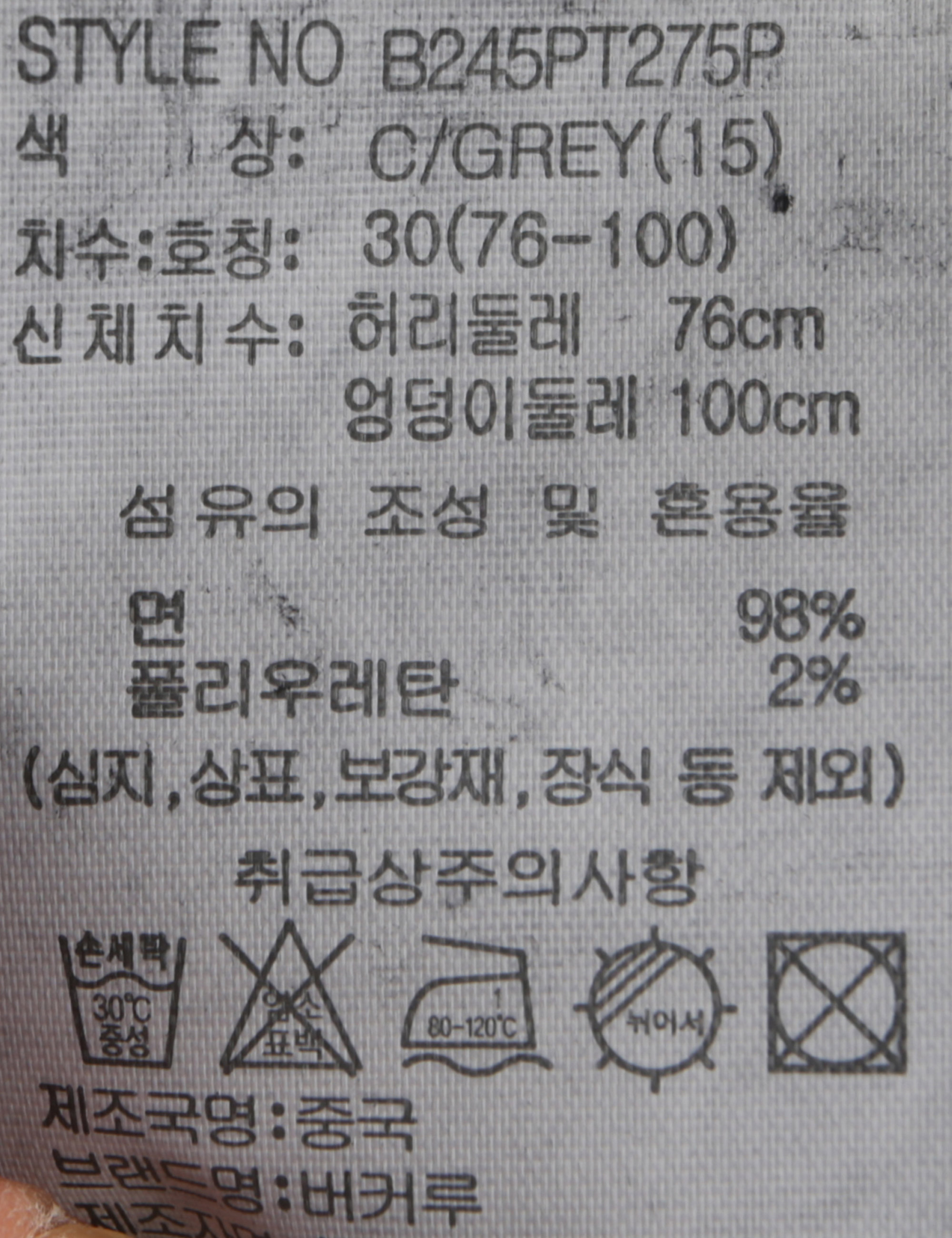 상품명 남성 32수 가먼트다잉 카고 팬츠(B245PT275P)