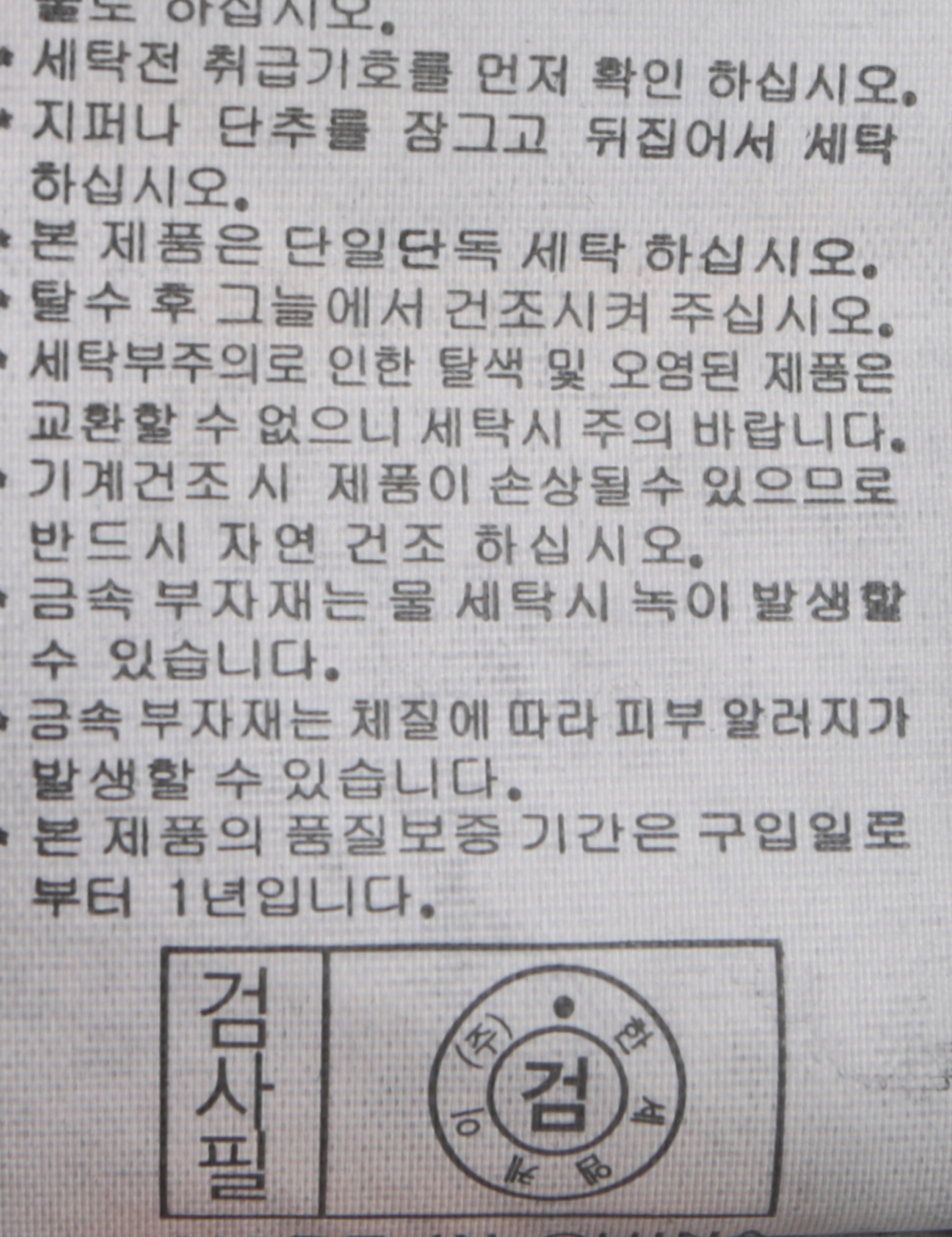 세탁방법 및 취급시 주의사항 본 제품은 손세탁 하십시오.(케어라벨참고)