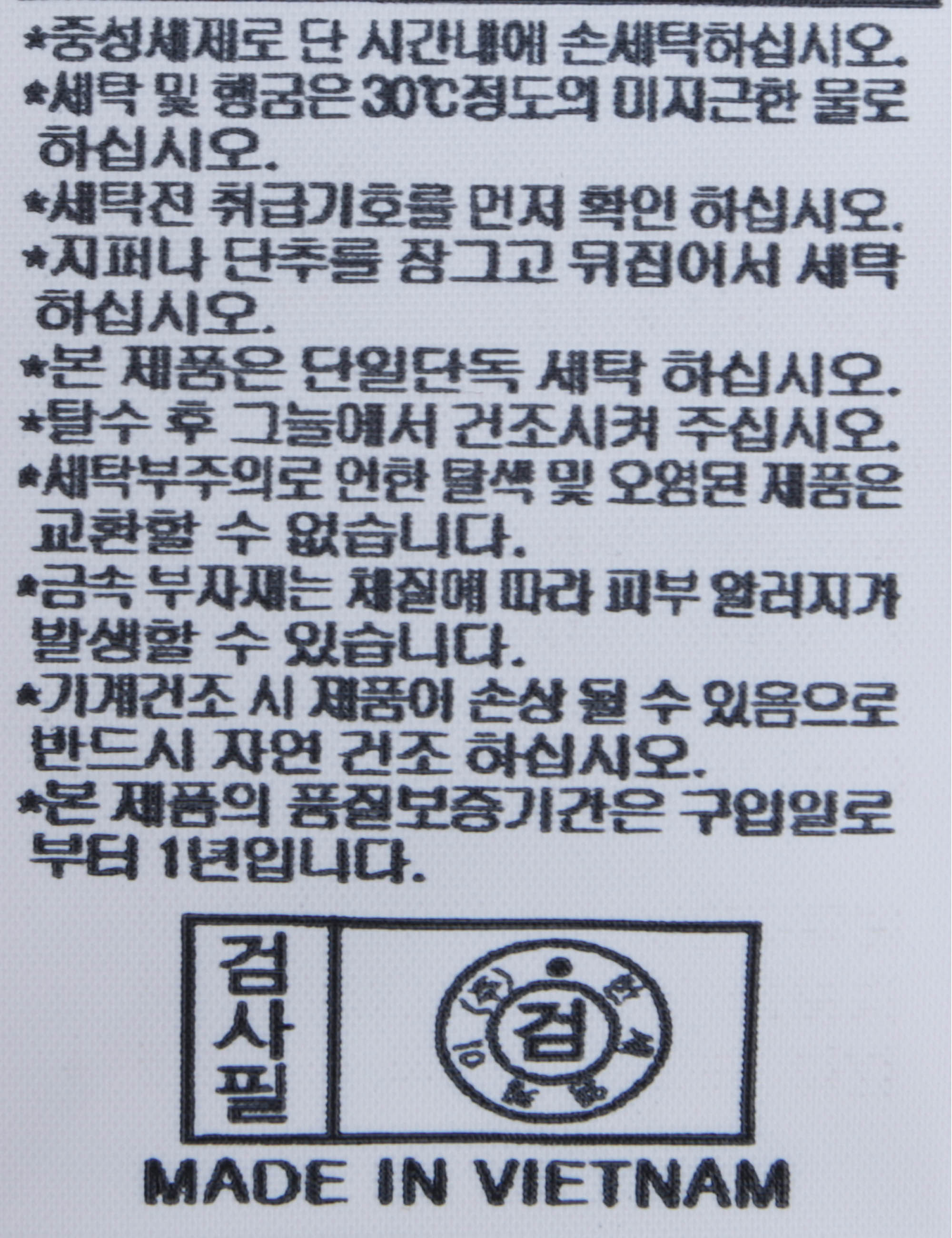 | 세탁방법 및 취급시 주의사항 | 본 제품은 손세탁 하십시오.(케어라벨참고) |