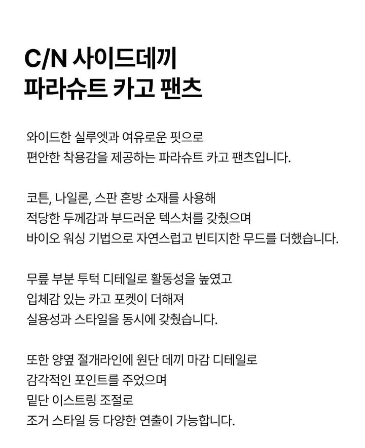 | 상품명 | C/N 사이드데끼 파라슈트 카고 팬츠(B252PT250P) |