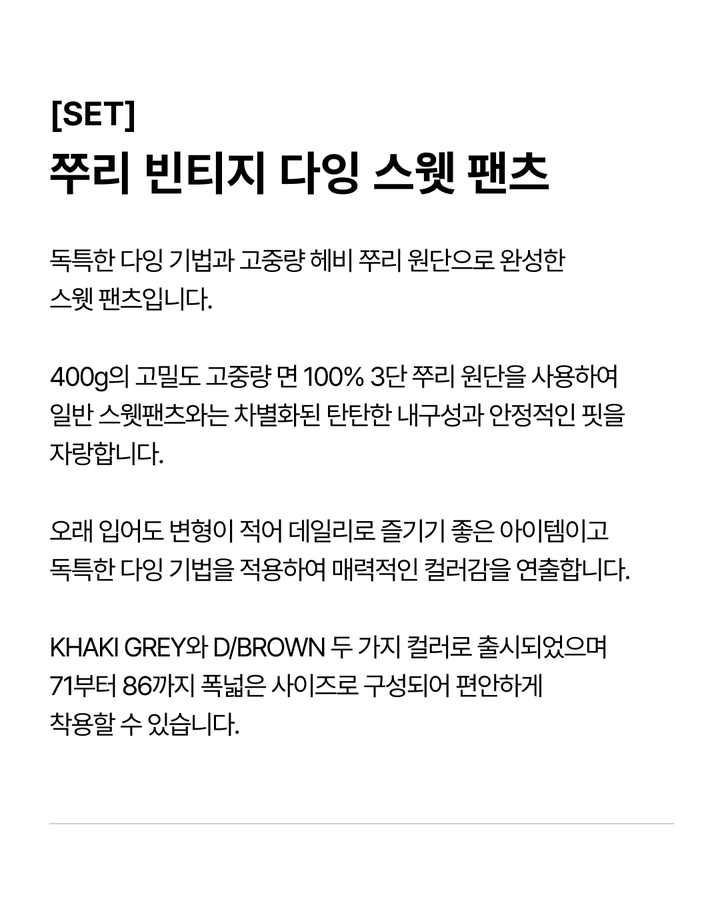 상품명 [SET] 쭈리 빈티지 다잉 스웻 팬츠(B254TP116P)