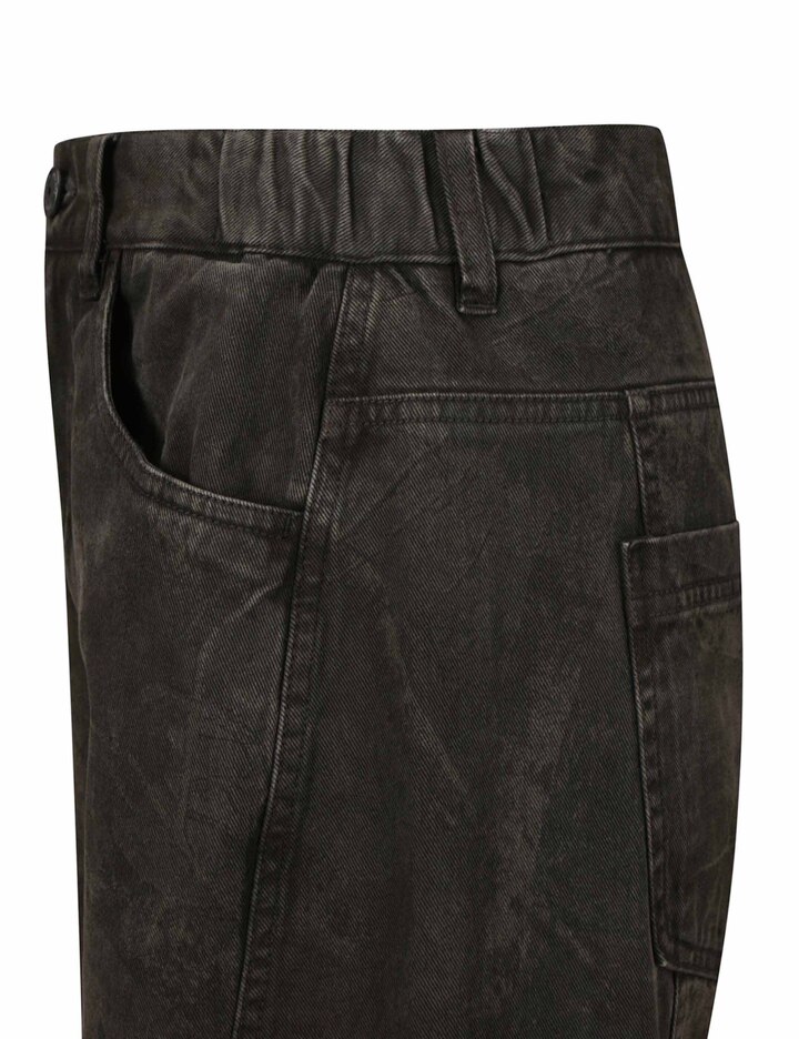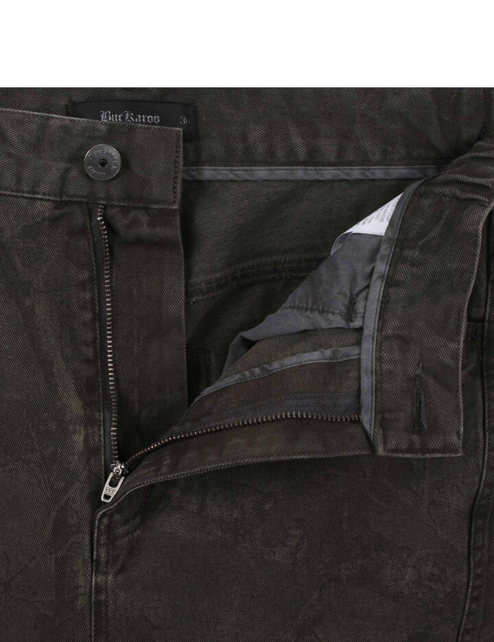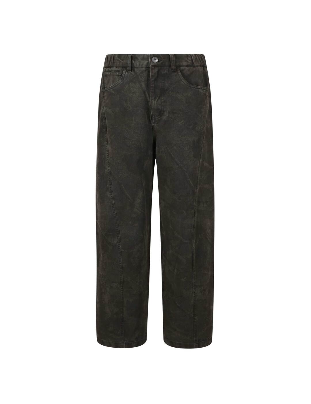자연 모티브 패턴을 프린팅한 후 가먼트 다잉 기법을 적용해 전체적인 컬러감을 톤 다운시킨 배럴 핏 팬츠입니다.