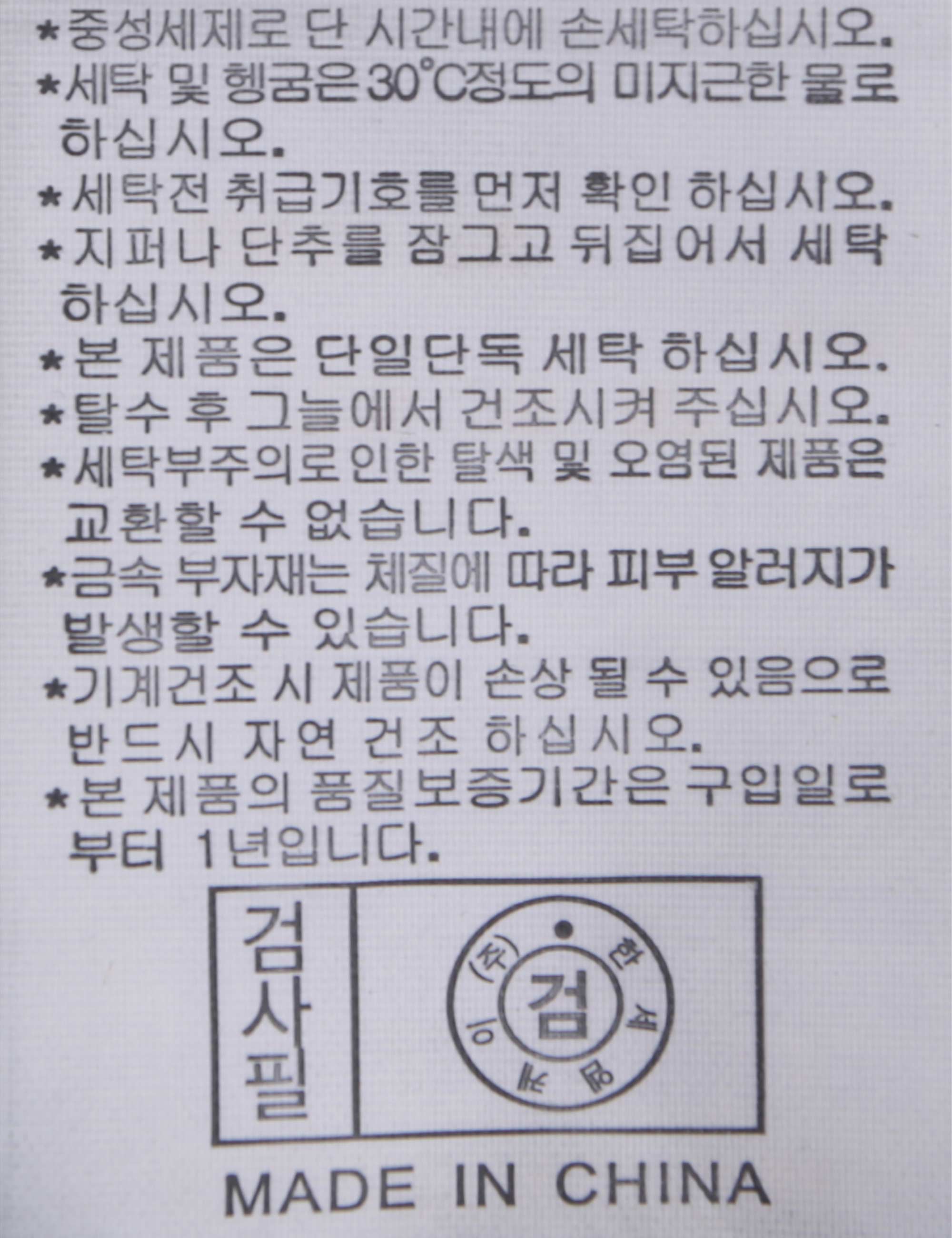 | 세탁방법 및 취급시 주의사항 | 본 제품은 손세탁 하십시오.(케어라벨참고) |
