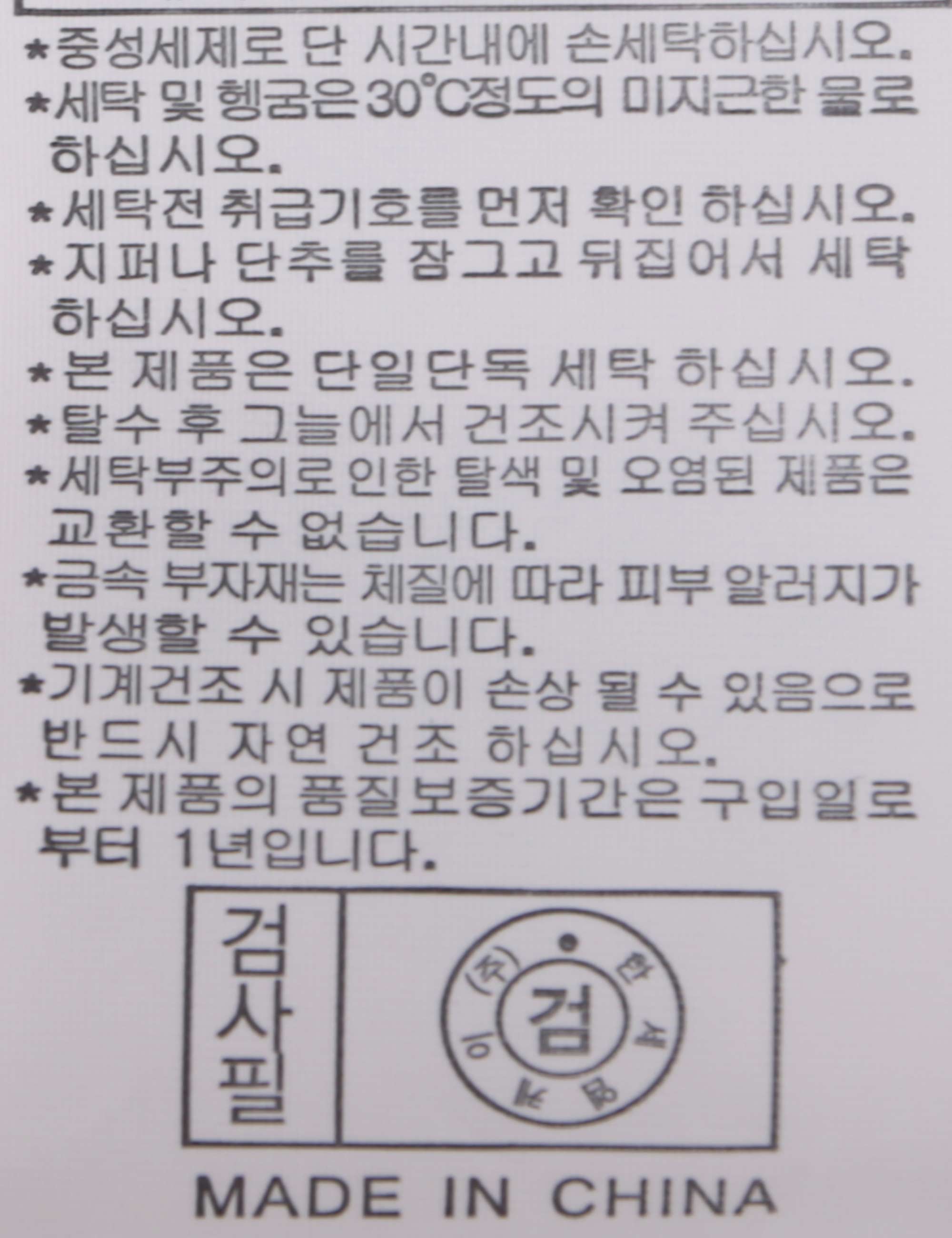 | 세탁방법 및 취급시 주의사항 | 본 제품은 손세탁 하십시오.(케어라벨참고) |