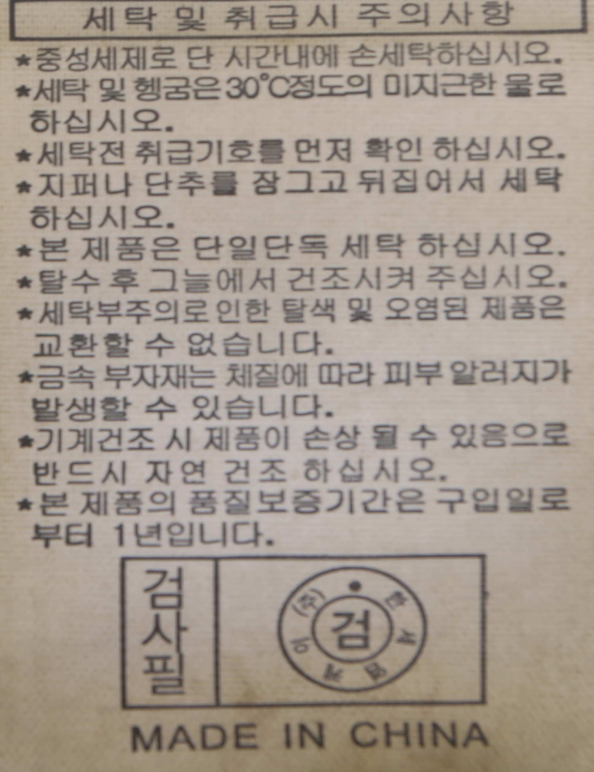 세탁방법 및 취급시 주의사항 본 제품은 손세탁 하십시오.(케어라벨참고)