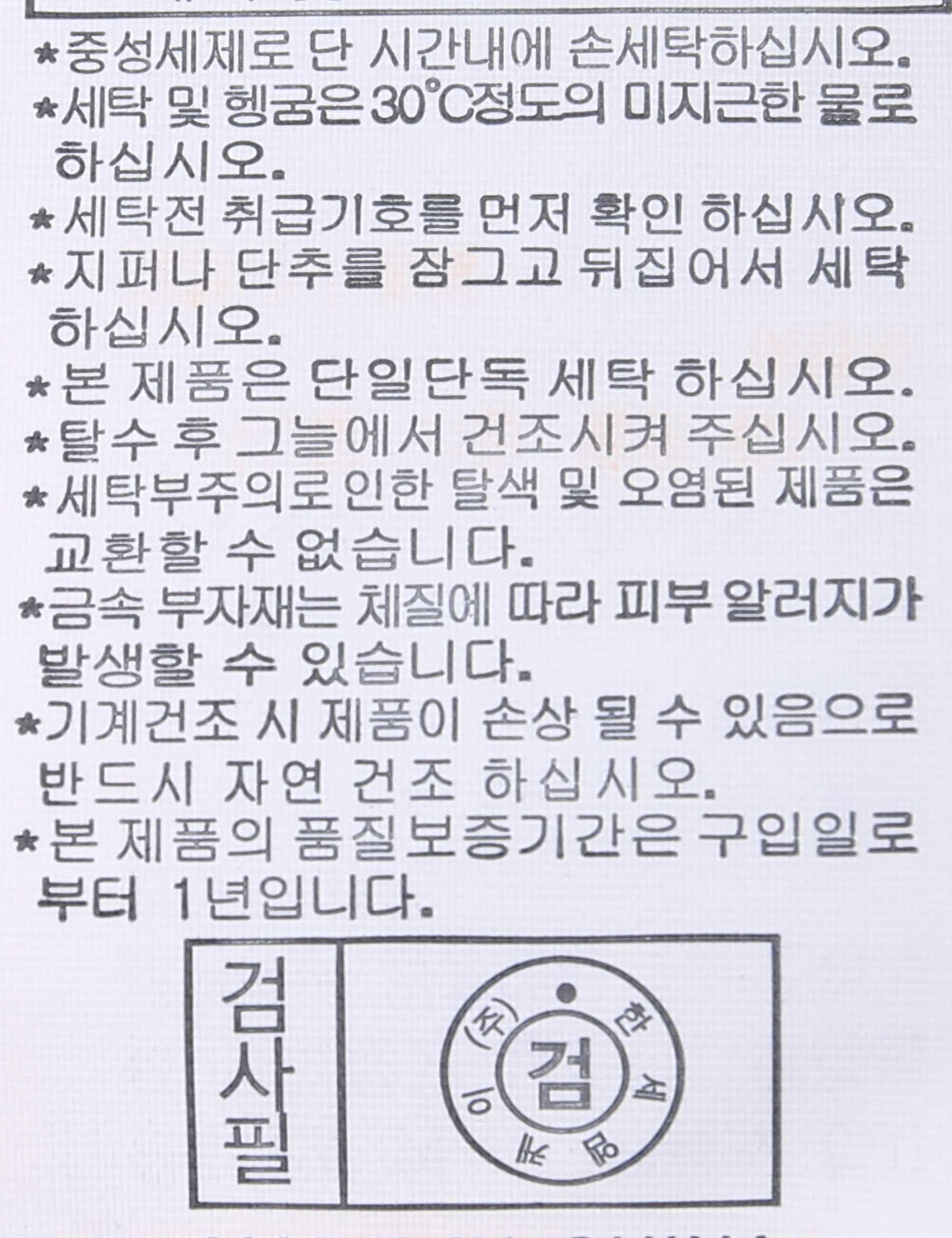 | 세탁방법 및 취급시 주의사항 | 본 제품은 손세탁 하십시오.(케어라벨참고) |