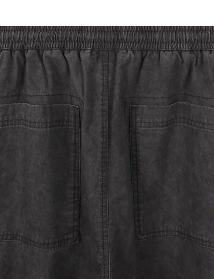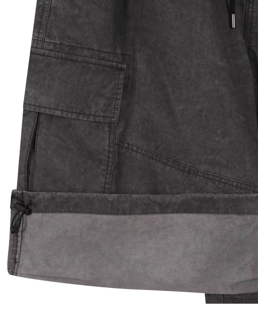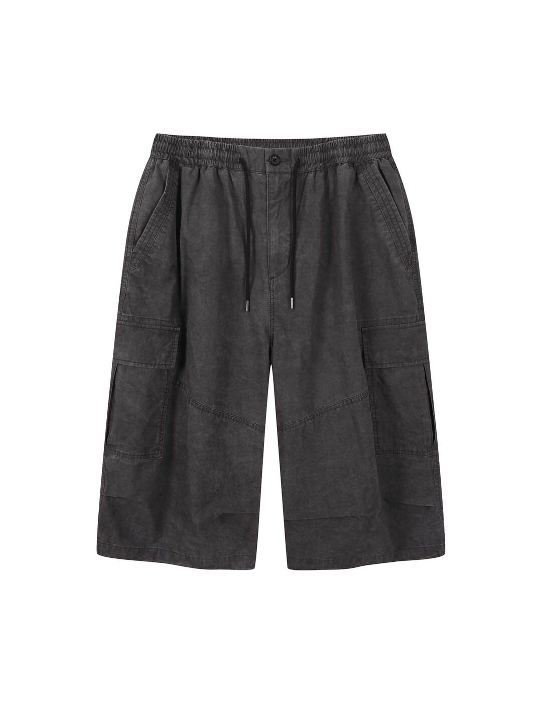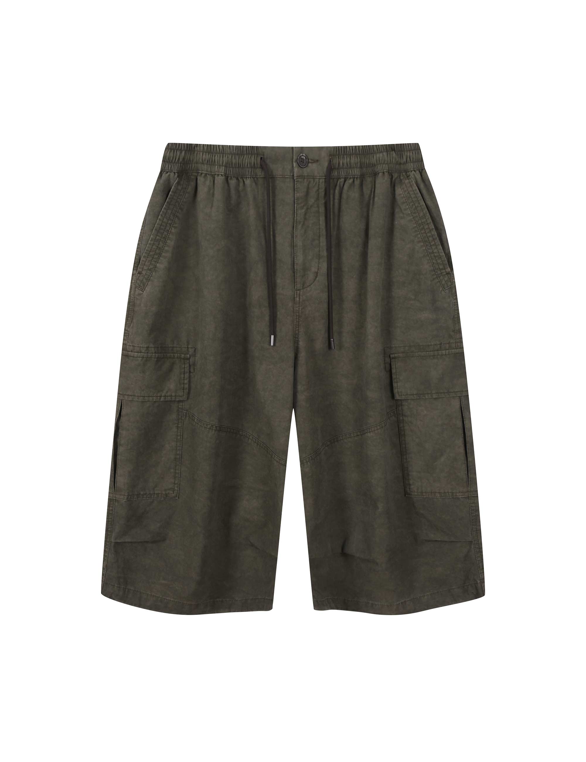 카고 포켓과 절개 디테일로 활동성을 높인 남성용 코튼 와이드 버뮤다 밴딩 쇼츠
