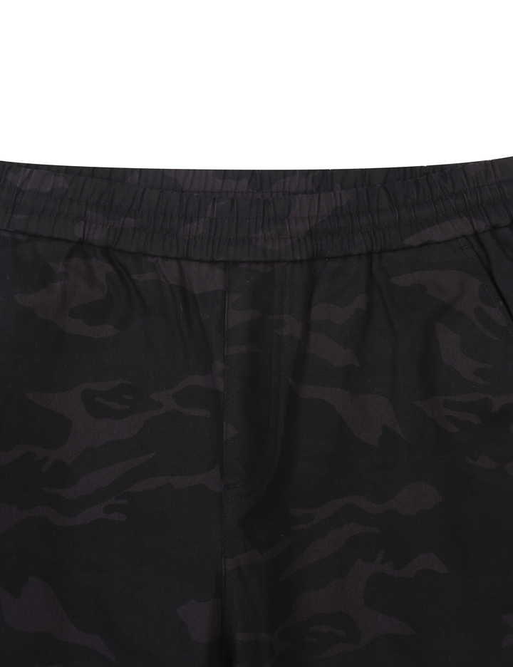 허벅지가 여유 있고 밑단에 이밴드를 사용한 조거 형태로
