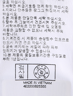 | 세탁방법 및 취급시 주의사항 | 중성세제로 단 시간내에 세탁하십시오.(케어라벨참고) |