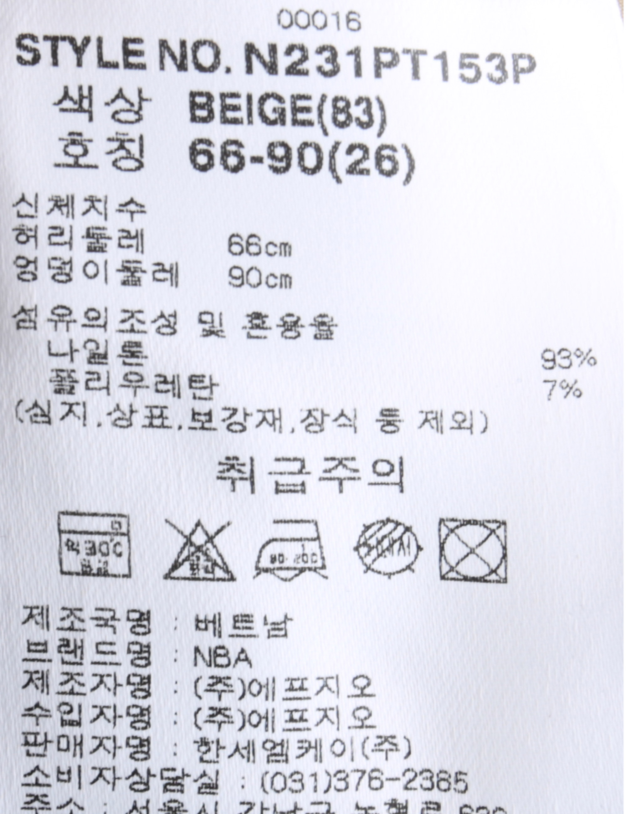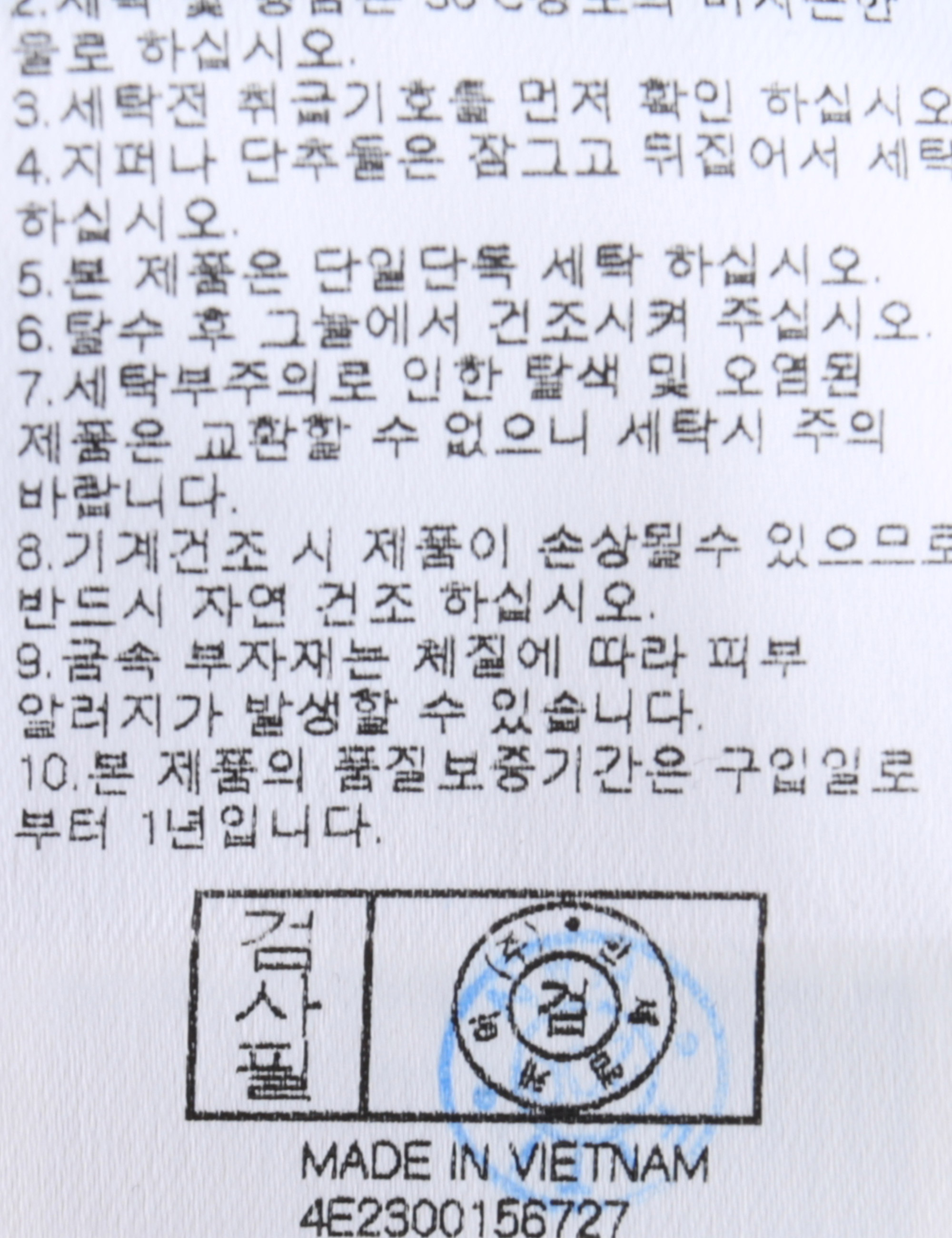 | 세탁방법 및 취급시 주의사항 | 중성세제로 단 시간내에 세탁하십시오.(케어라벨참고) |
