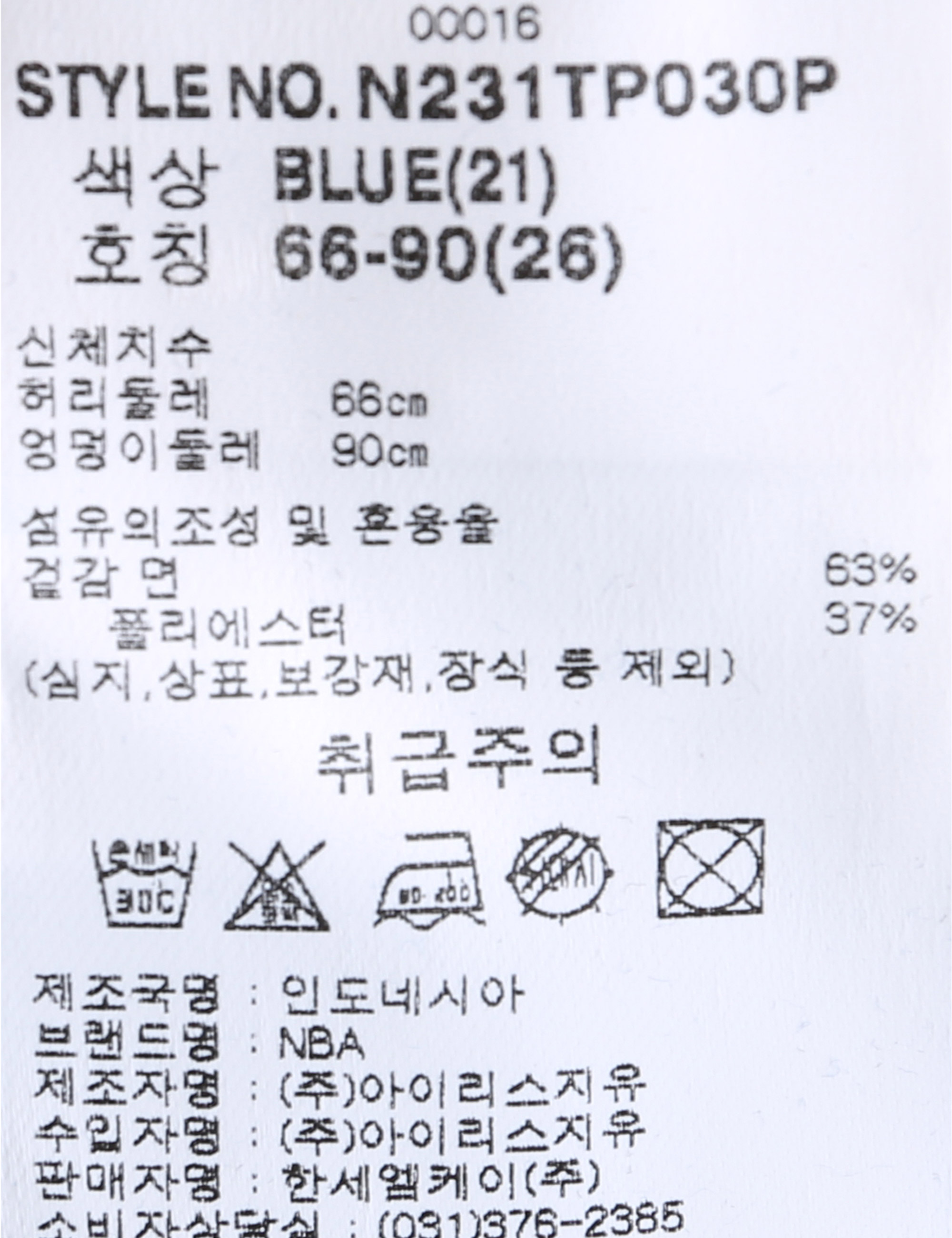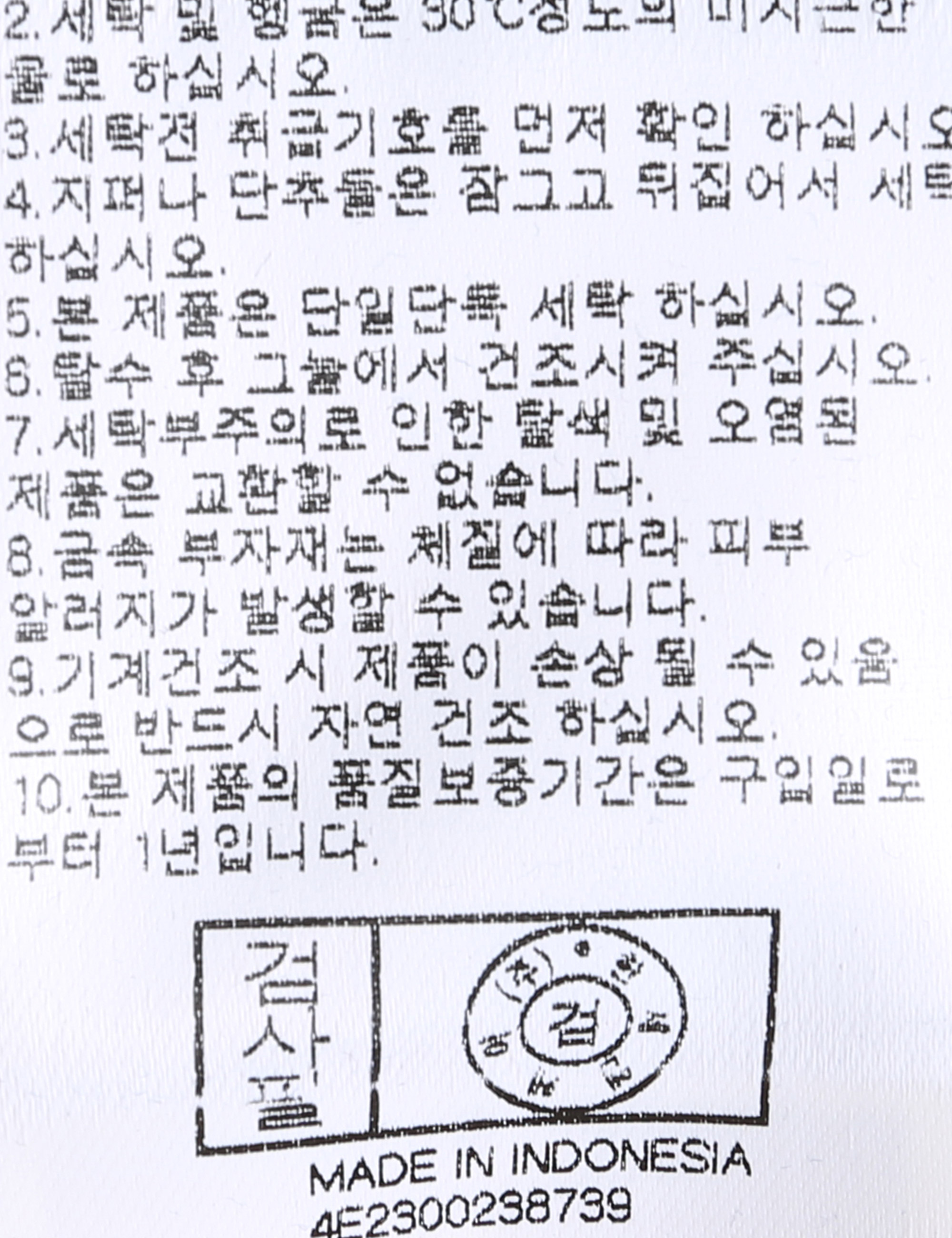 | 세탁방법 및 취급시 주의사항 | 중성세제로 단 시간내에 세탁하십시오.(케어라벨참고) |