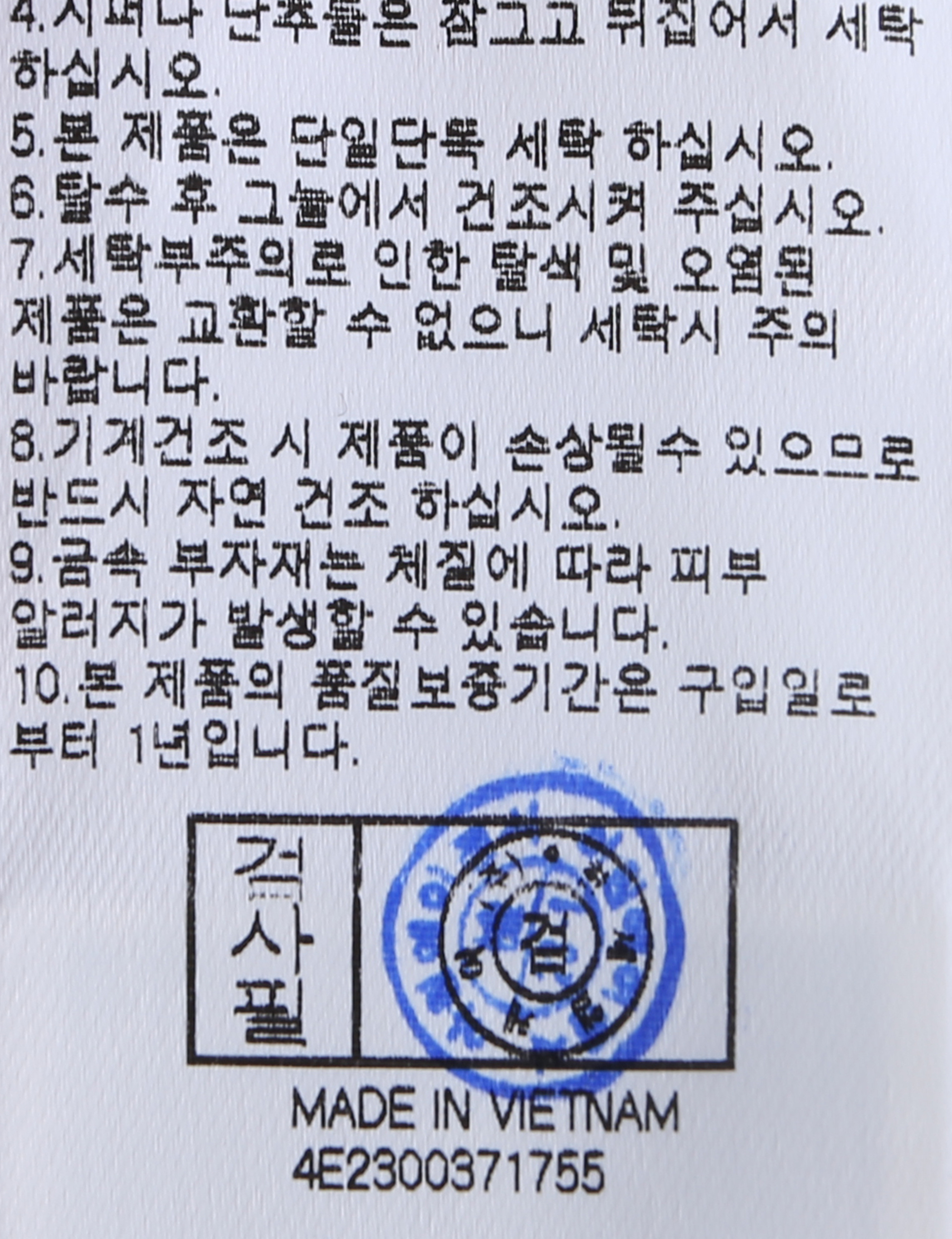 | 세탁방법 및 취급시 주의사항 | 중성세제로 단 시간내에 세탁하십시오.(케어라벨참고) |
