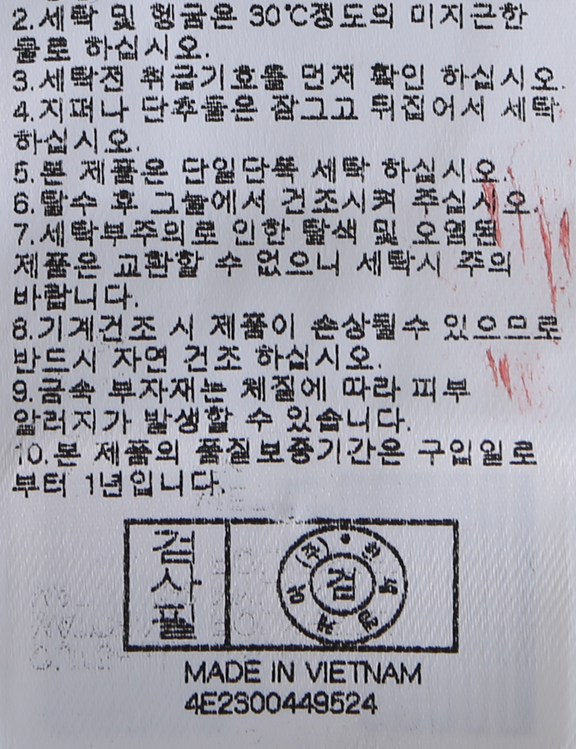 | 세탁방법 및 취급시 주의사항 | 중성세제로 단 시간내에 세탁하십시오.(케어라벨참고) |