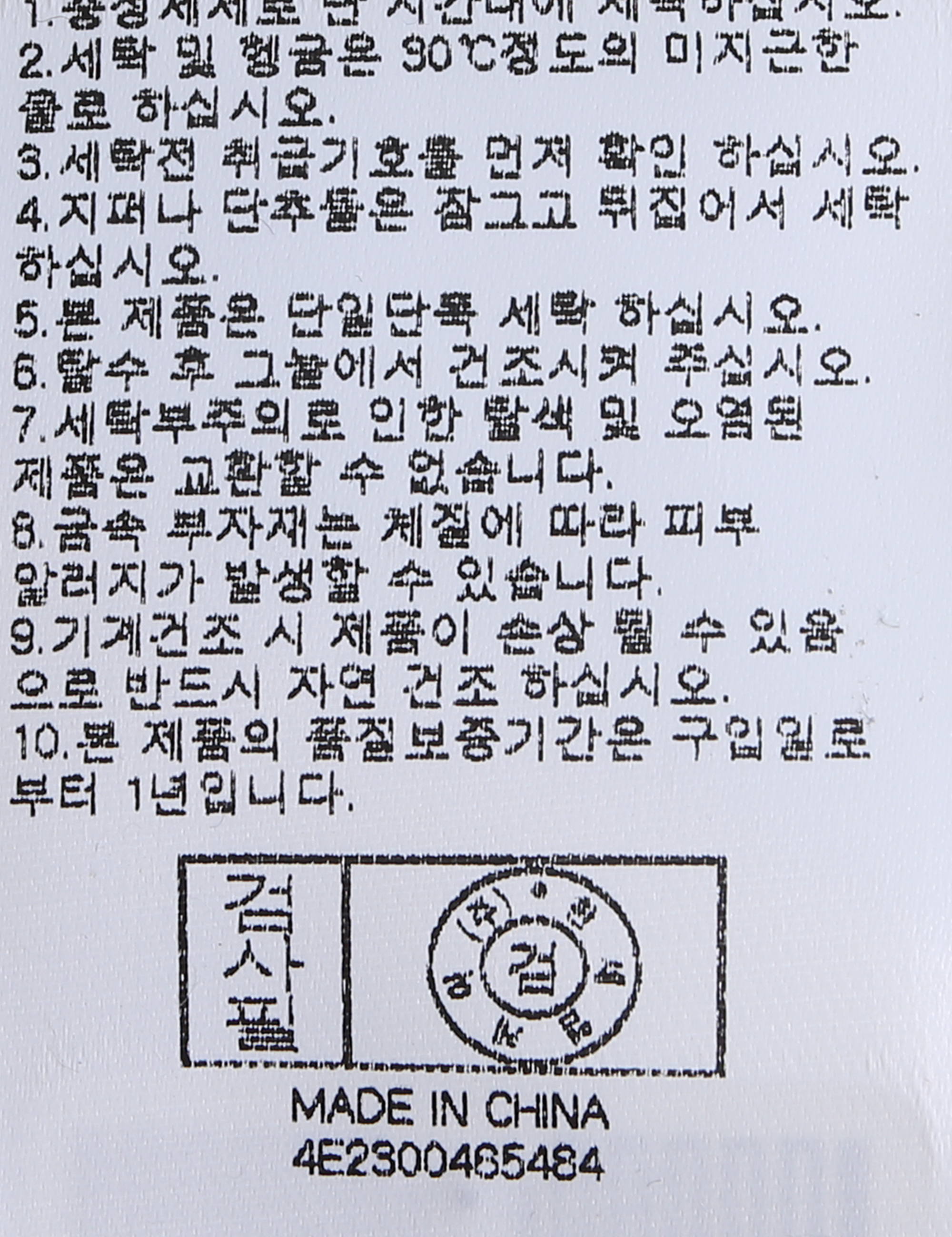 | 세탁방법 및 취급시 주의사항 | 중성세제로 단 시간내에 세탁하십시오.(케어라벨참고) |