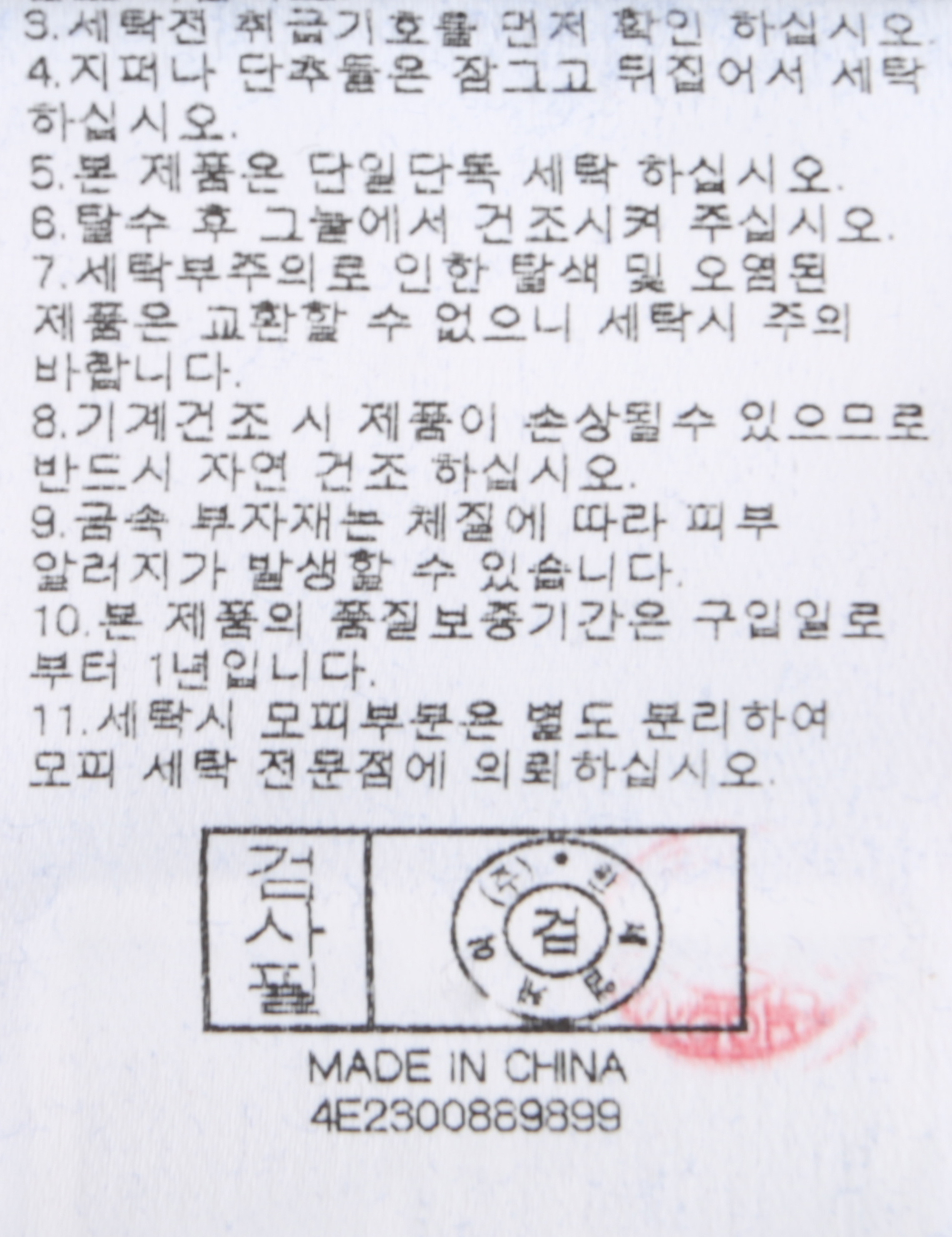 세탁방법 및 취급시 주의사항 중성세제로 단 시간내에 세탁하십시오.(케어라벨참고)