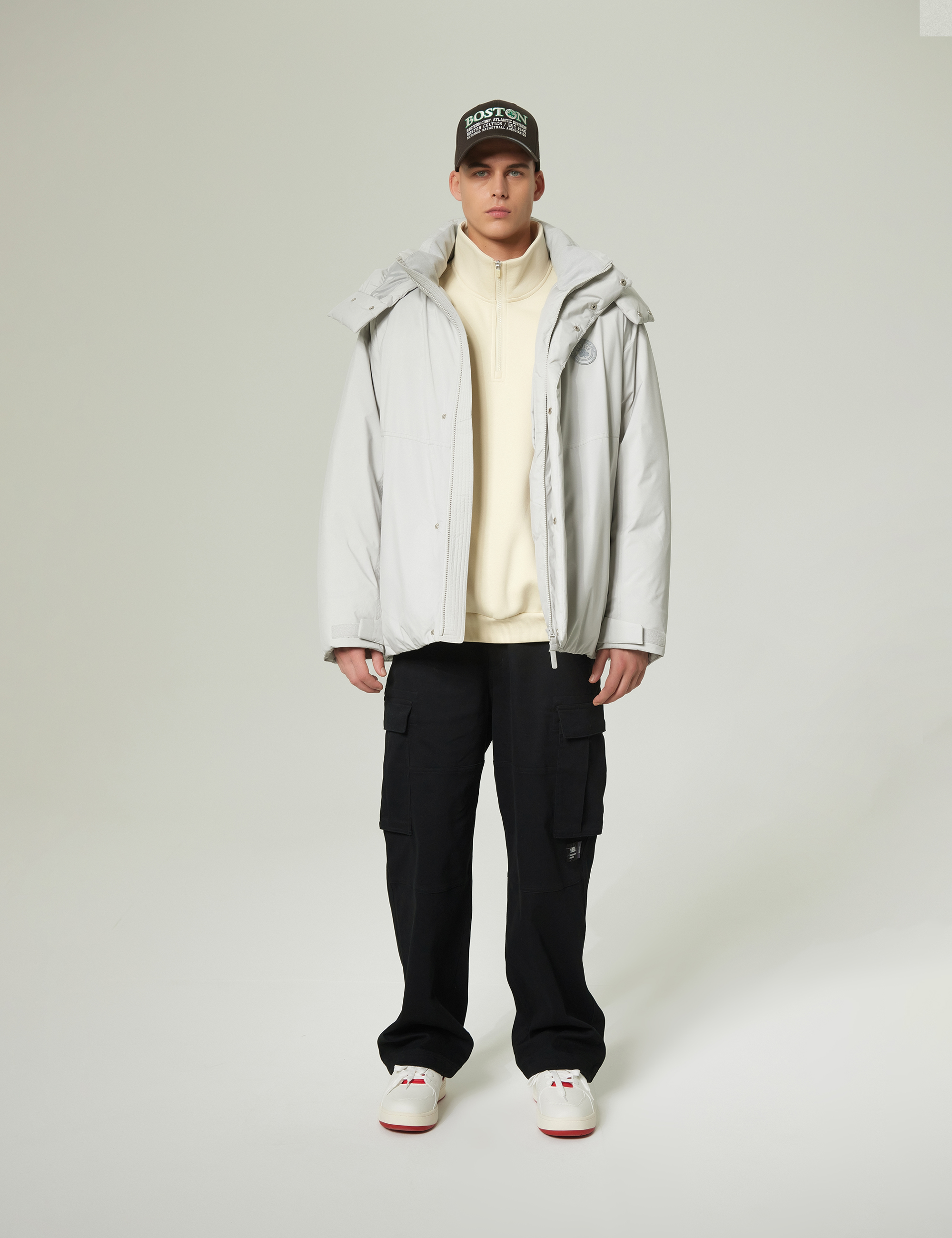 밀리터리 감성의 카고 포켓과 밑단 사이즈를 조절할 수 있는 스트링이 내장되어 있음.