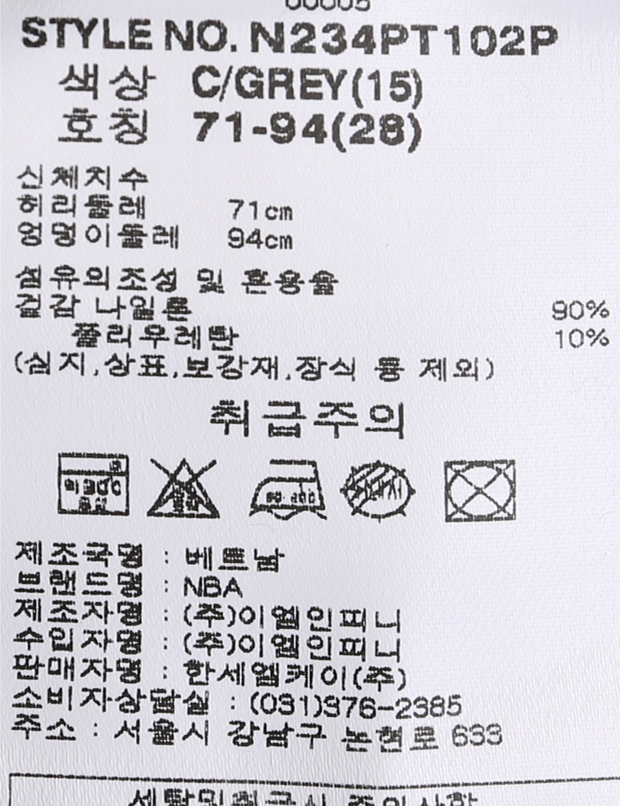 제품소재 [겉감]나일론90% 폴리우레탄10%