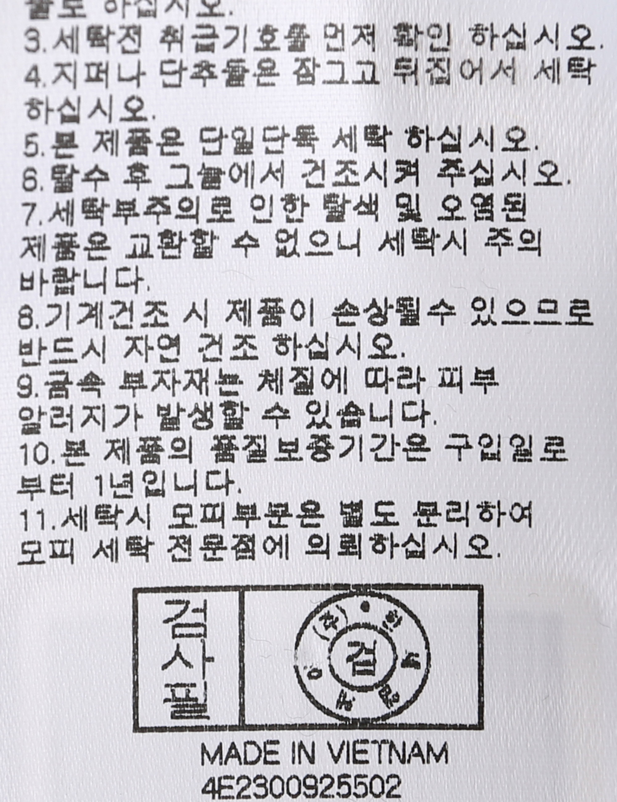 세탁방법 및 취급시 주의사항 중성세제로 단 시간내에 세탁하십시오.(케어라벨참고)