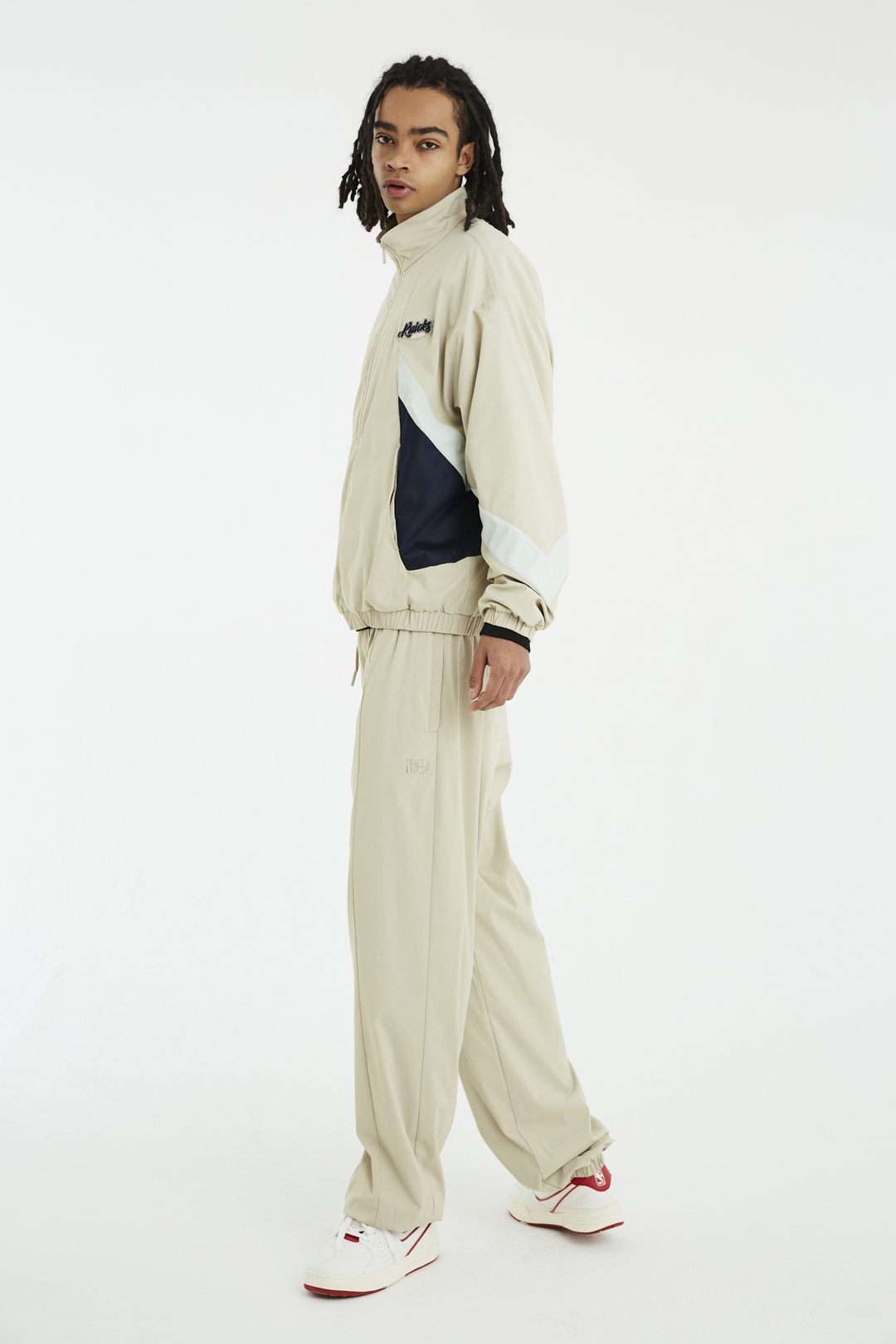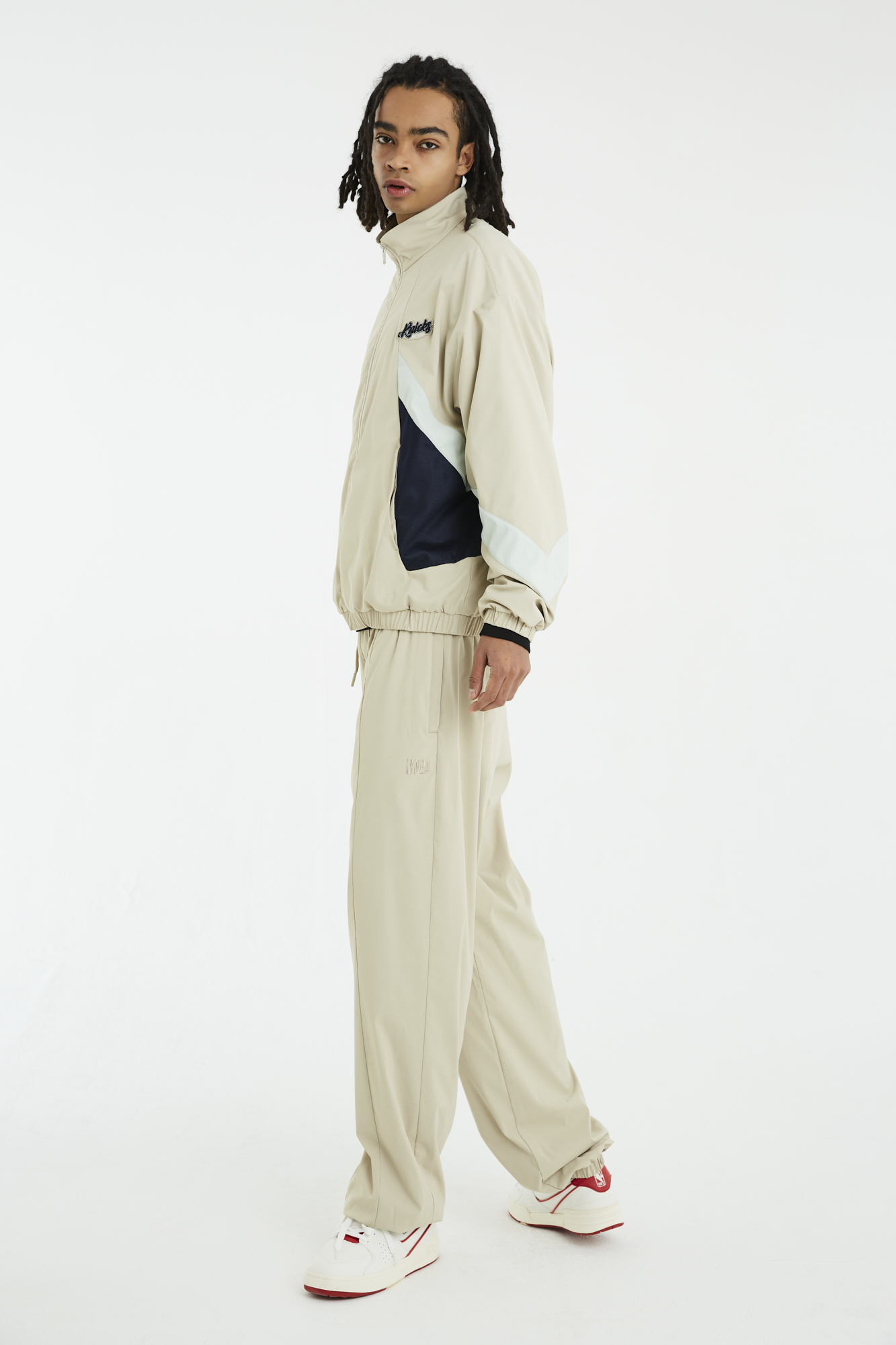 밑단에 밴드를 내장하여 착장 시 밑단을 잡아주어 편안하면서 트렌디한 FIT으로 연출 가능
