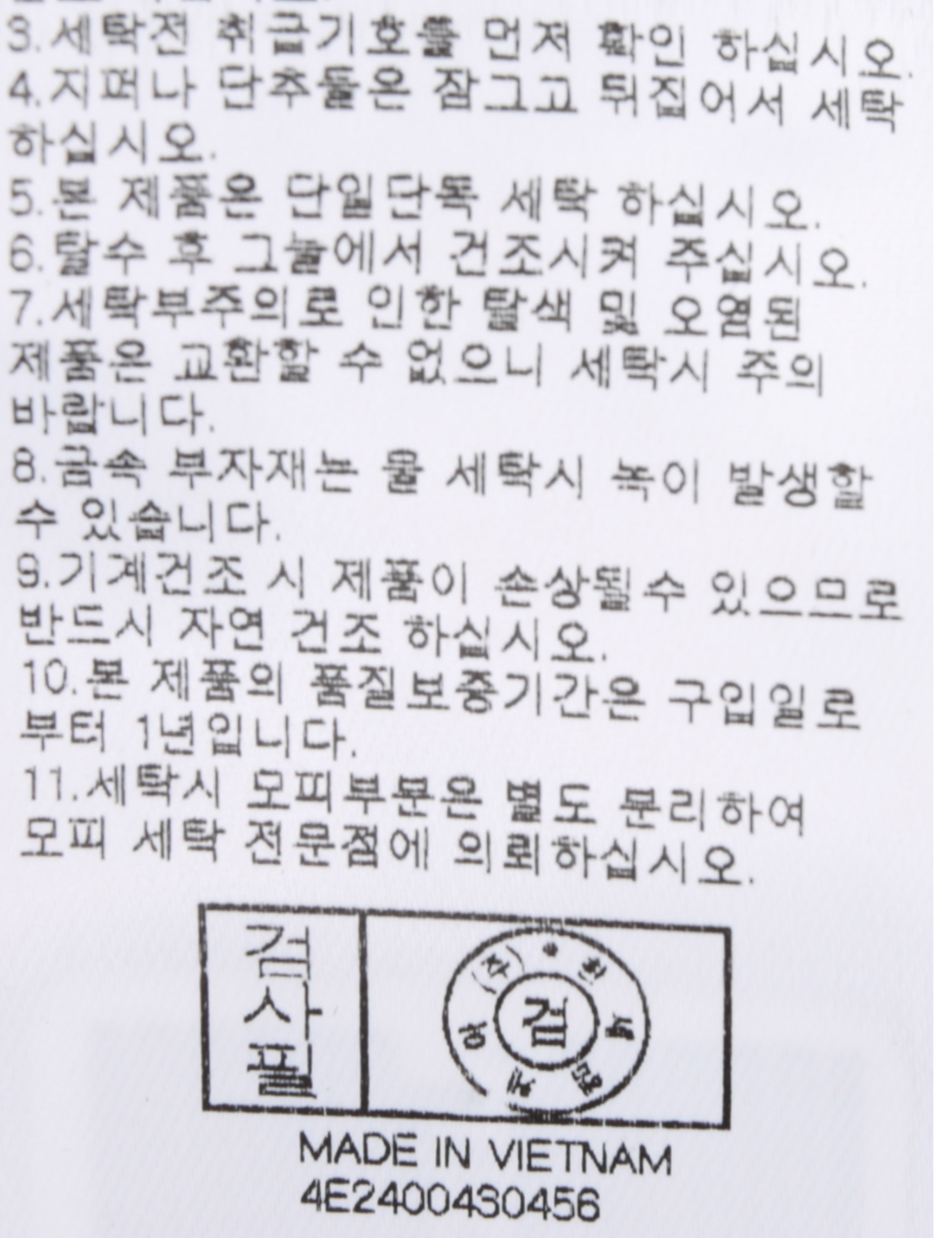 | 세탁방법 및 취급시 주의사항 | 본 제품은 반드시 드라이크리닝 하십시오.(세탁라벨참고) |