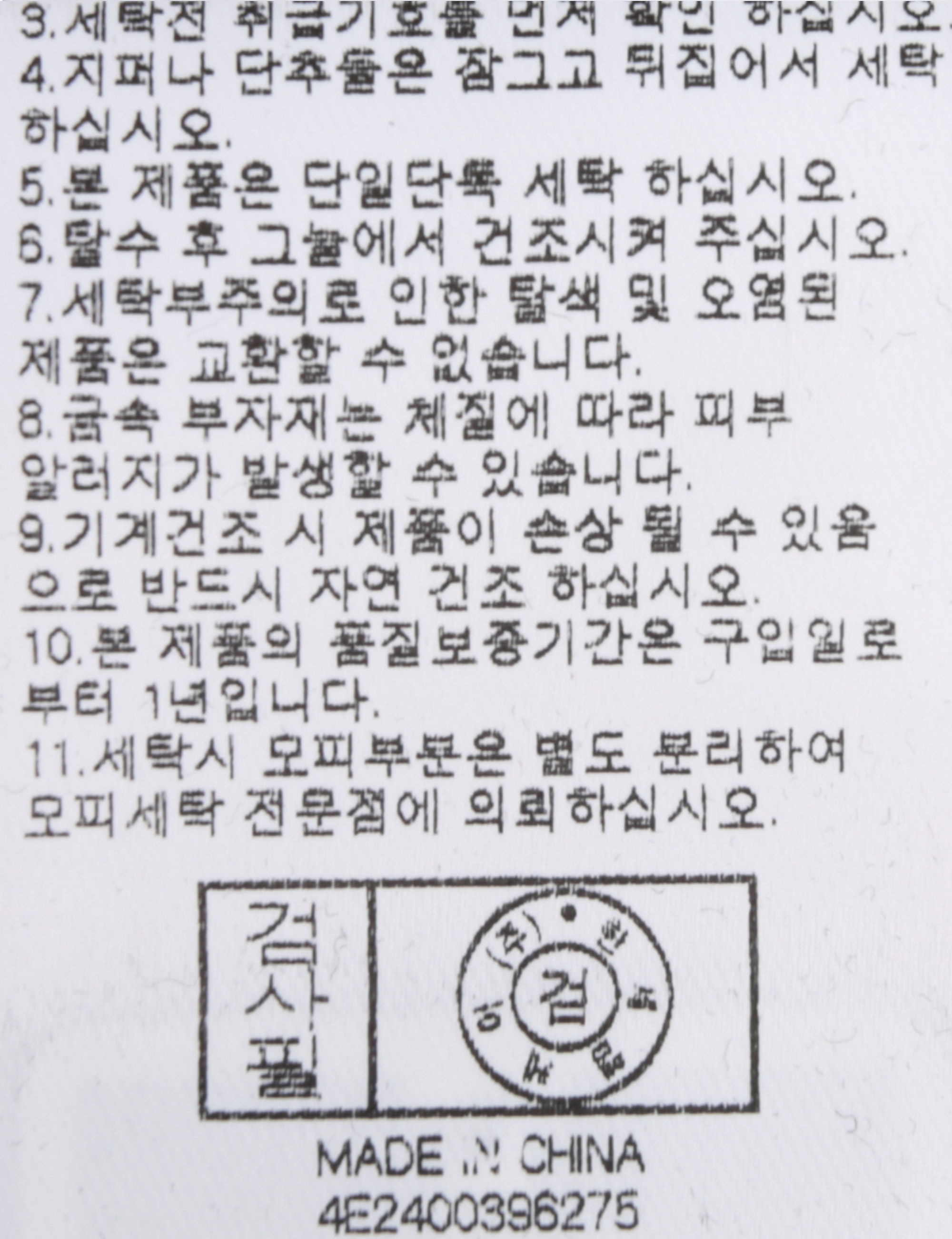 | 세탁방법 및 취급시 주의사항 | 본 제품은 손세탁 하십시오.(케어라벨참고) |