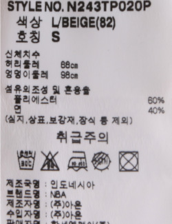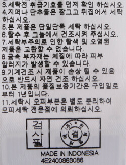 | 세탁방법 및 취급시 주의사항 | 본 제품은 손세탁 하십시오.(케어라벨참고) |