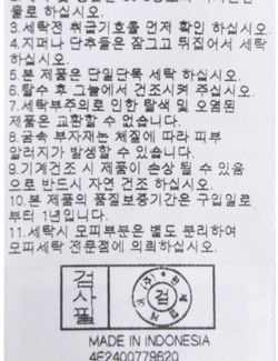 | 세탁방법 및 취급시 주의사항 | 본 제품은 손세탁 하십시오.(케어라벨참고) |