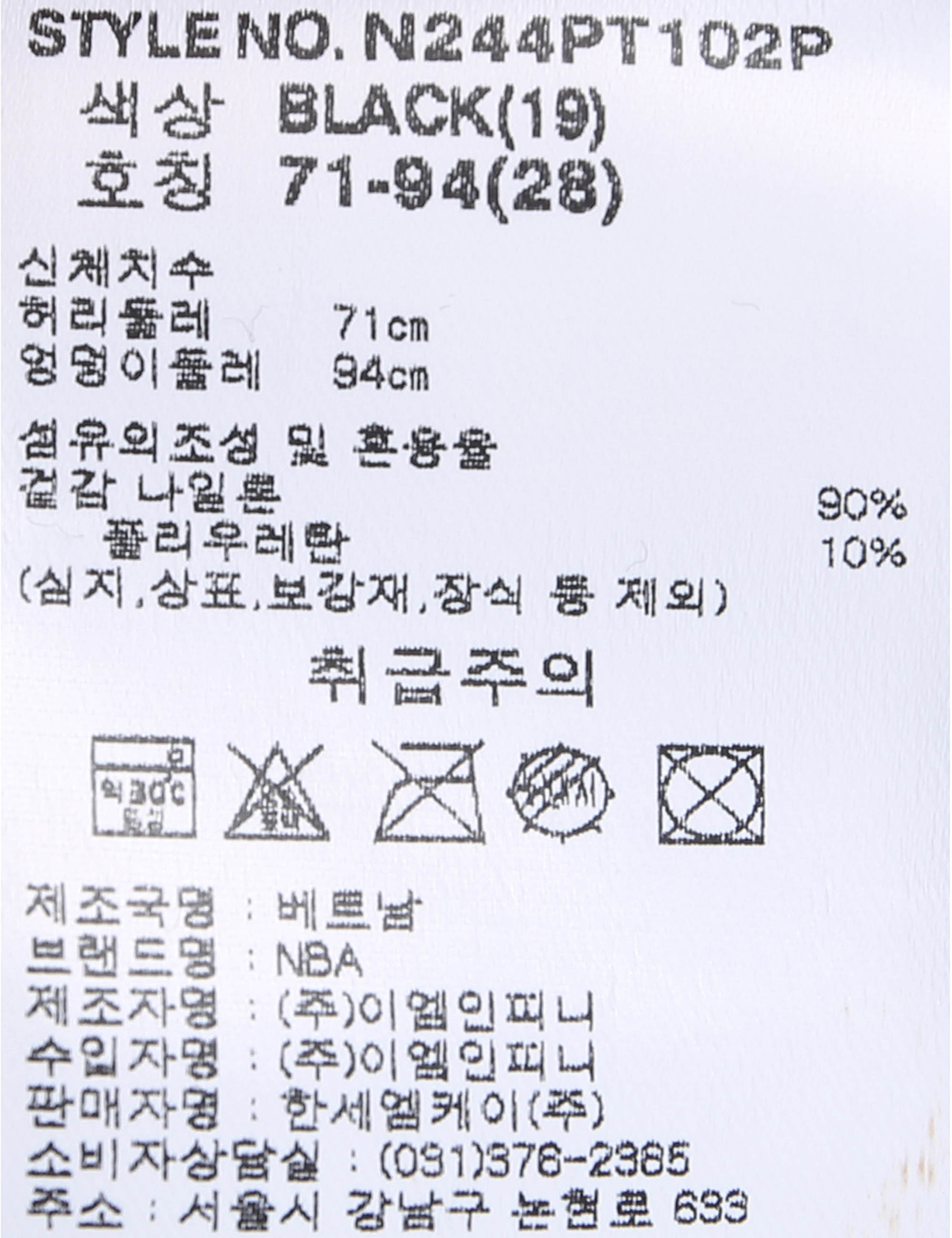 상품명 NBA 나일론 스판 기모 조거팬츠(N244PT102P)