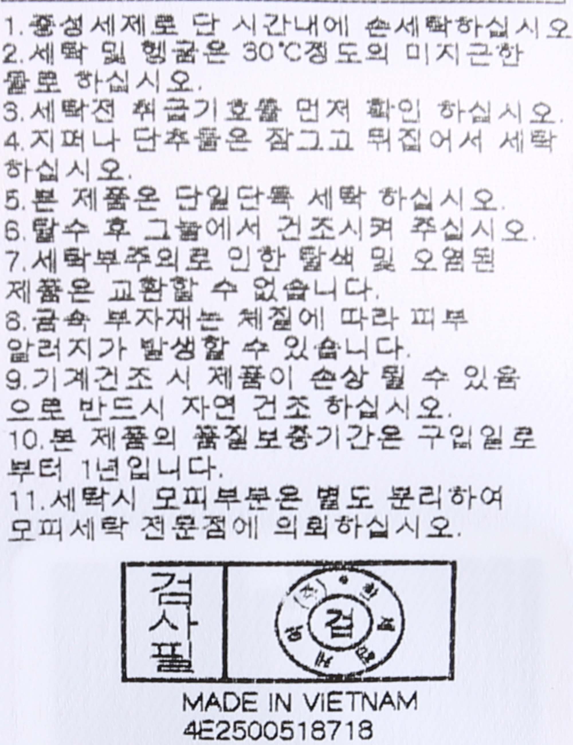 세탁방법 및 취급시 주의사항 본 제품은 손세탁 하십시오.(케어라벨참고)