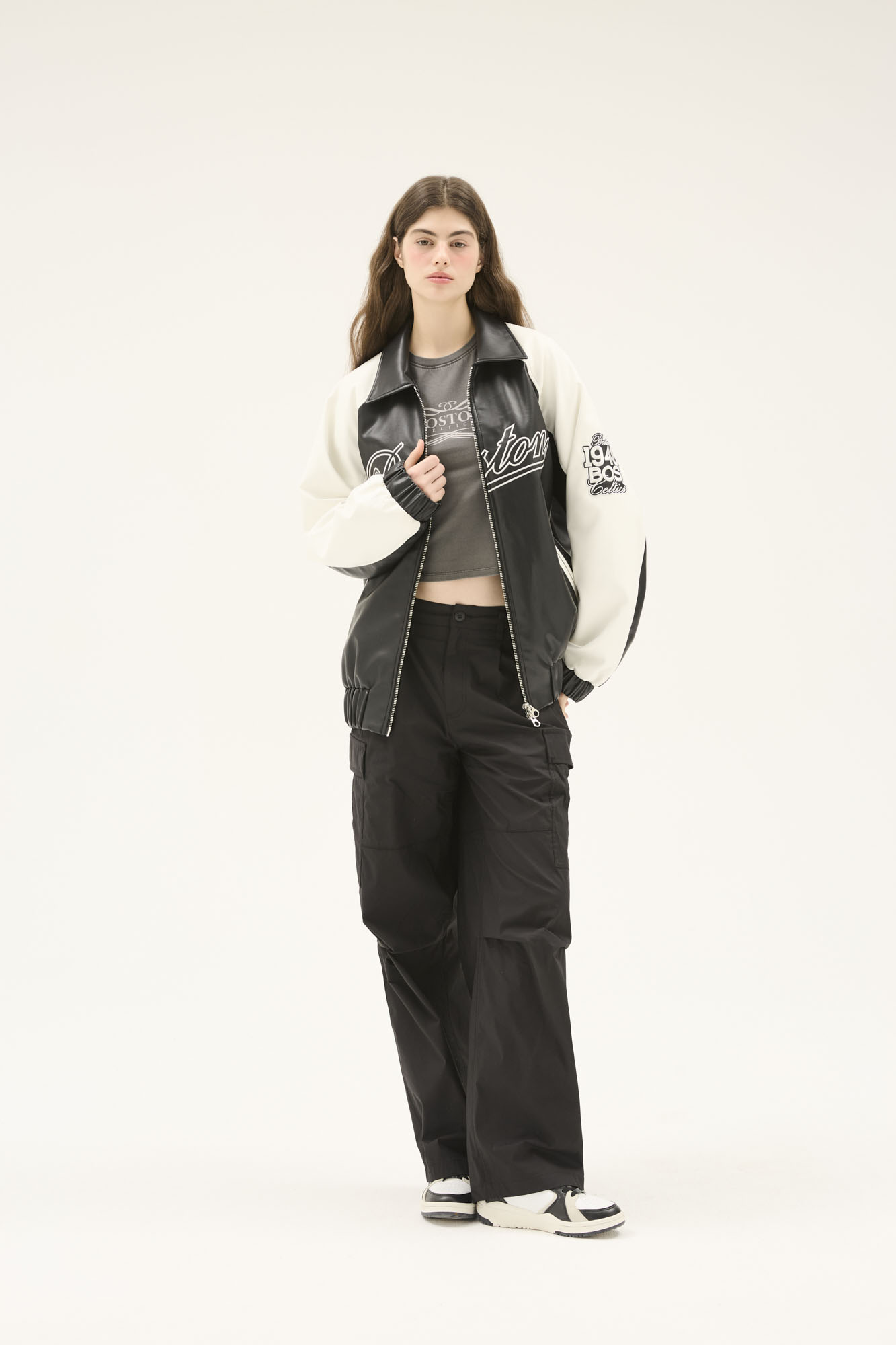 전체적으로 넉넉한 사이즈로 작업 된 오버핏으로 편안하게 착장이 가능하면서 스트릿하게 연출가능