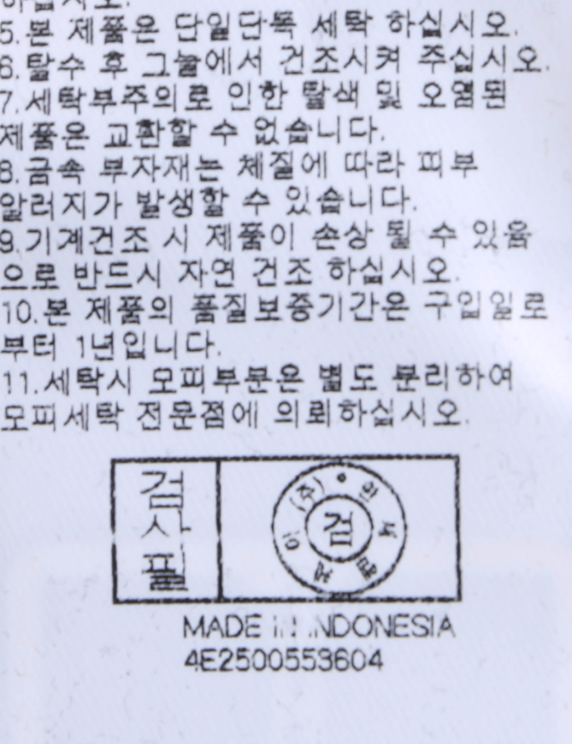 | 세탁방법 및 취급시 주의사항 | 본 제품은 손세탁 하십시오.(케어라벨참고) |