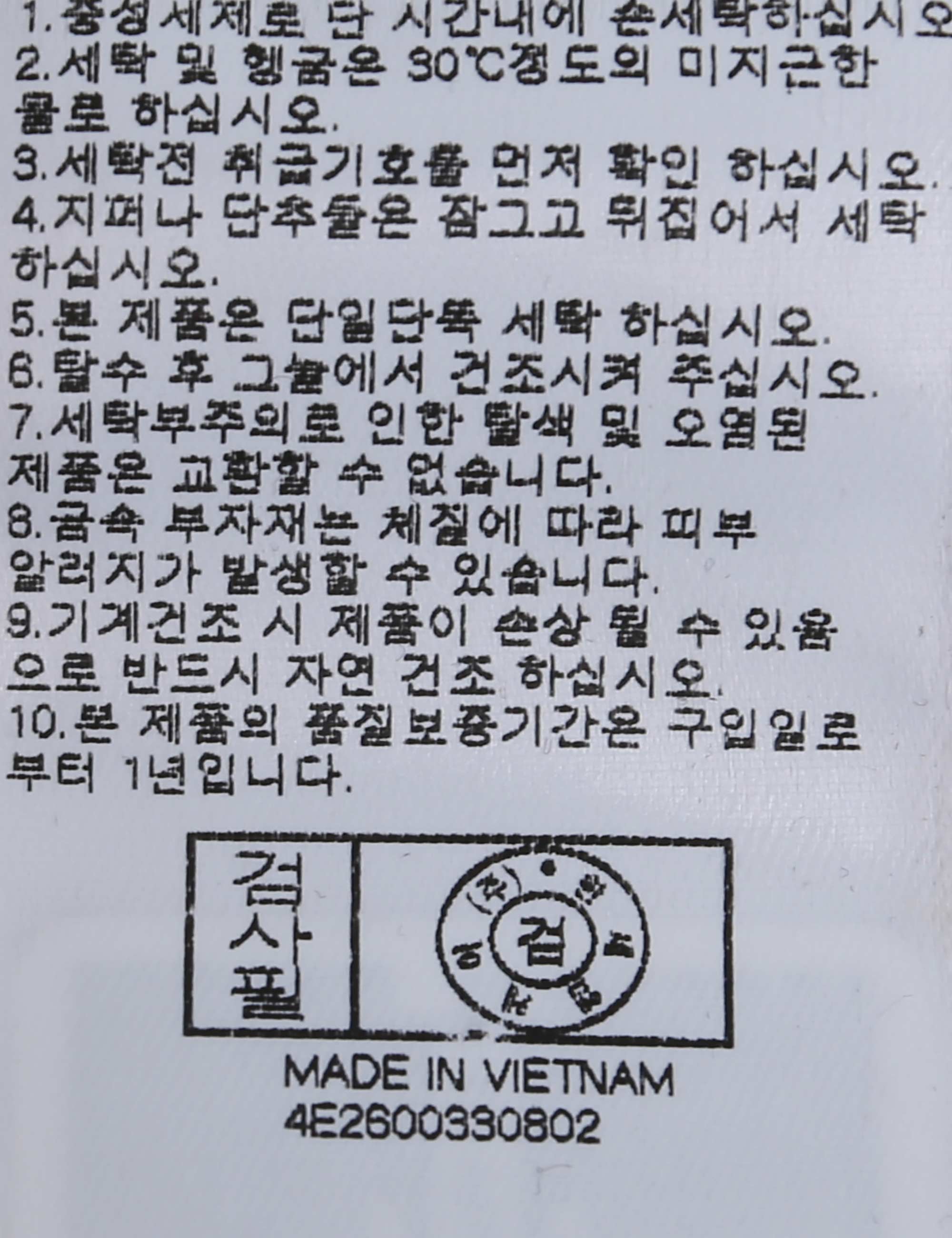 | 세탁방법 및 취급시 주의사항 | 본 제품은 손세탁 하십시오.(케어라벨참고) |