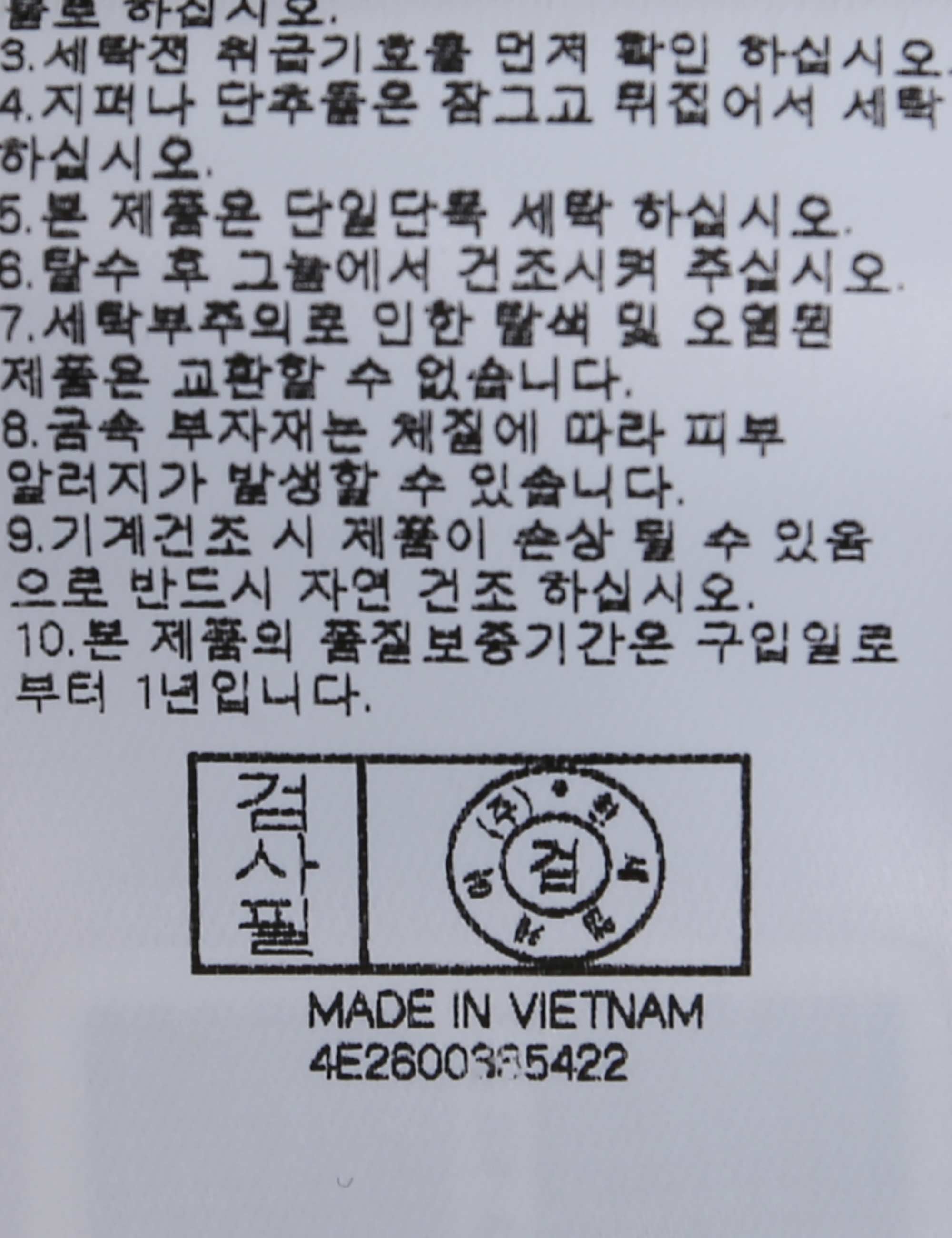 | 세탁방법 및 취급시 주의사항 | 본 제품은 손세탁 하십시오.(케어라벨참고) |